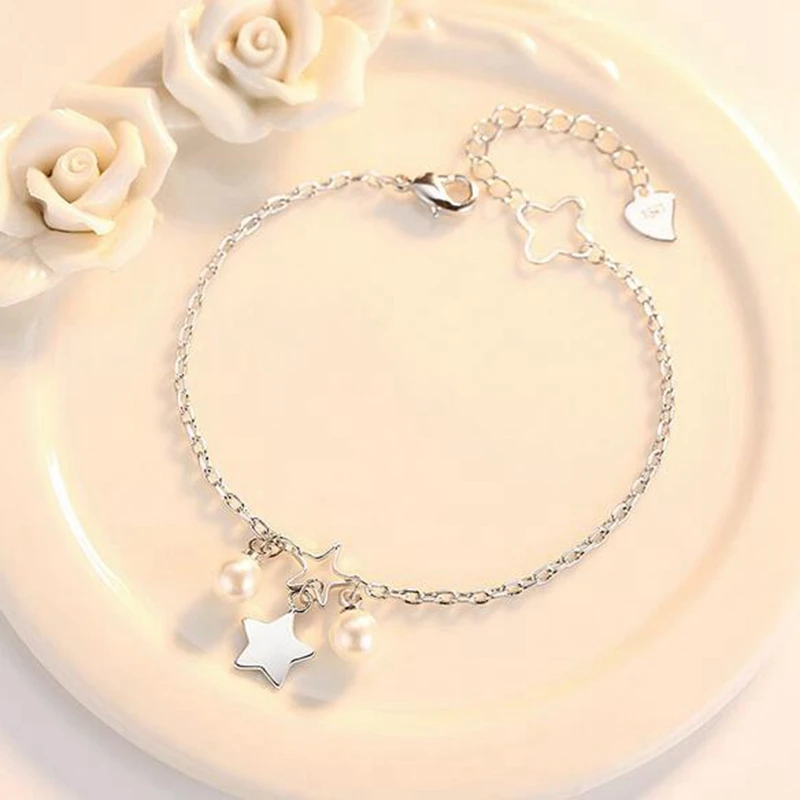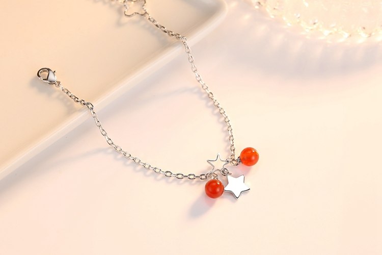 Wholesale Sweet Fashion Woman Girl Party Gift ABS Shell Pearl Red Agate Star 925 Sterling Silver Bracelet Bangle SZ126