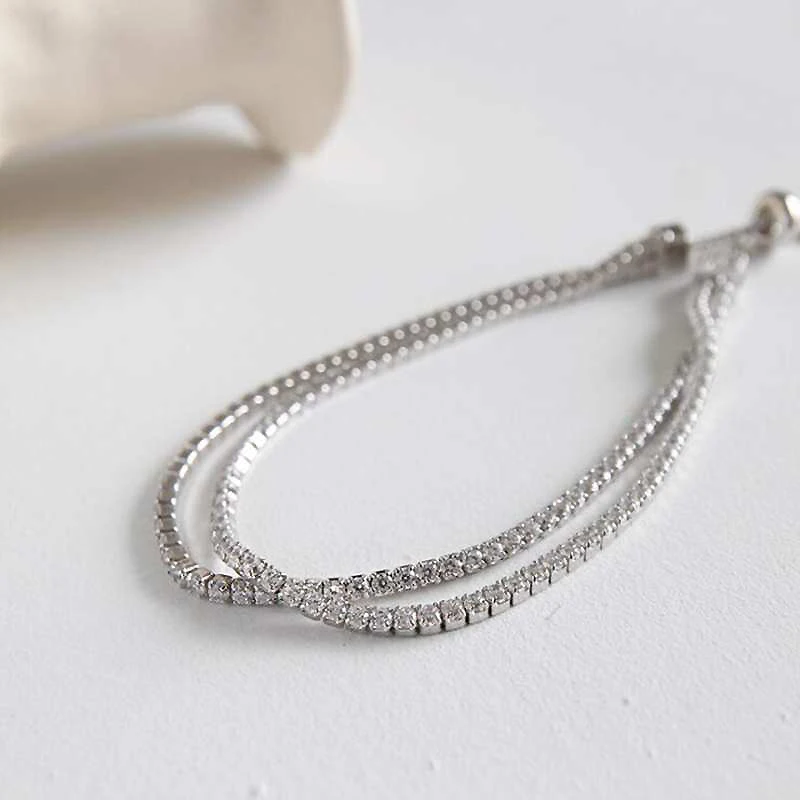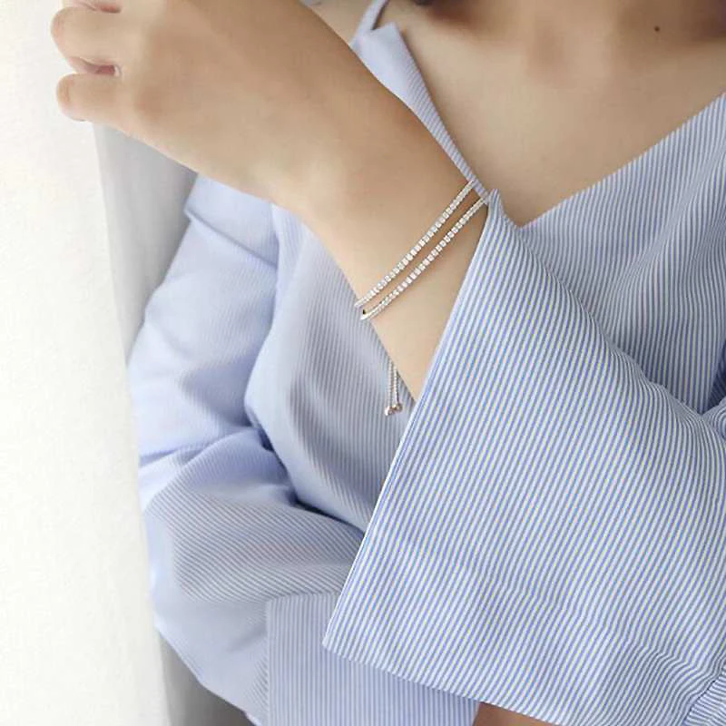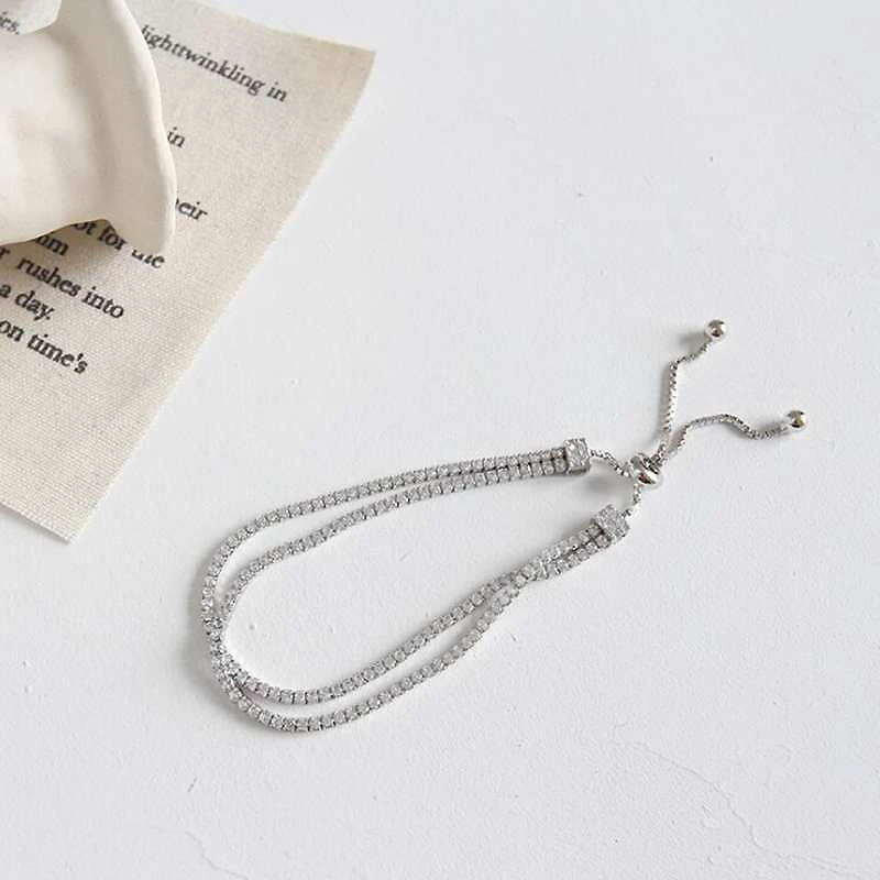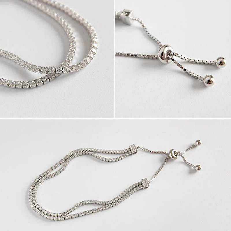 Double Layer Box Chain 100% 925 Sterling Silver Bracelet Ladies Cubic Zircon Bracelet for Girls Wedding Bracelets YBR061