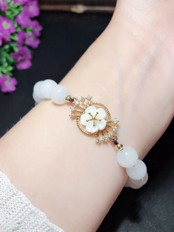 S925 Sterling Silver 18k Gold Pendant Hetian Jade Beaded Bracelet