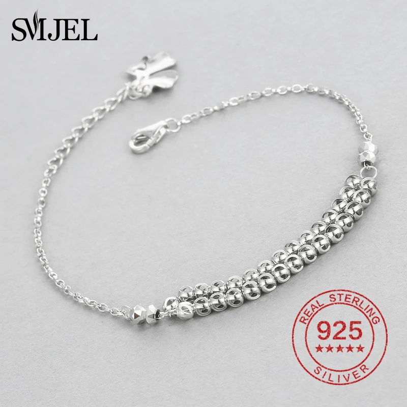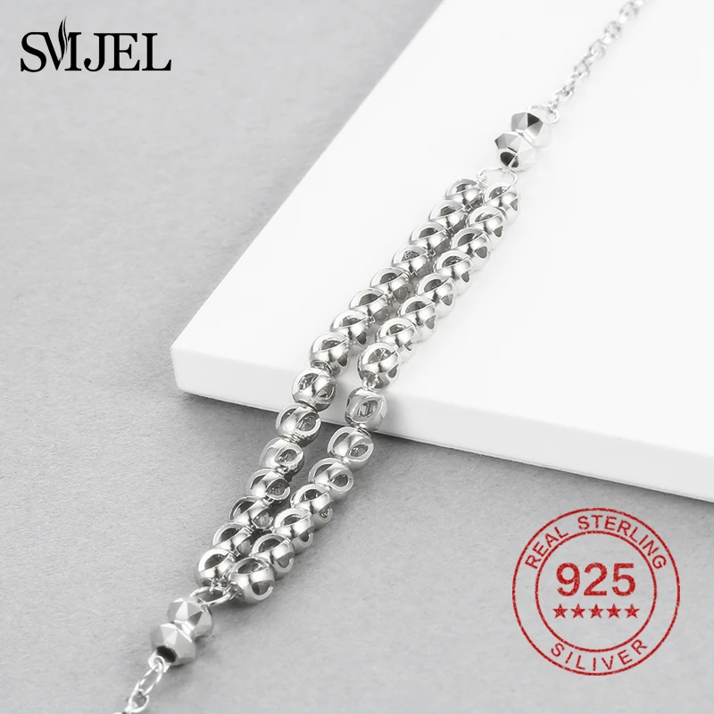 100% 925 Sterling Silver Beaded Bracelets Women Silver Chain Hand Bangle Double Layered Bracelets pulseras mujer moda 2020