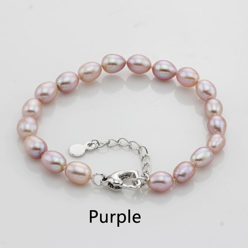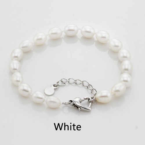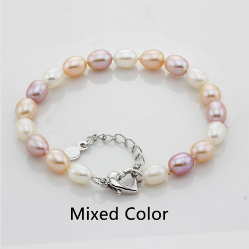 Real Natural Pearl Bracelet 7-8mm Rice Shape White Genuine Cultured Pearl Bracelet with Fres Shipping