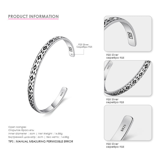Real 925 Sterling Silver Bangles&Bracelets for Women Sword Design National Style Full Cuff Bangles Brand Fine Jewelry
