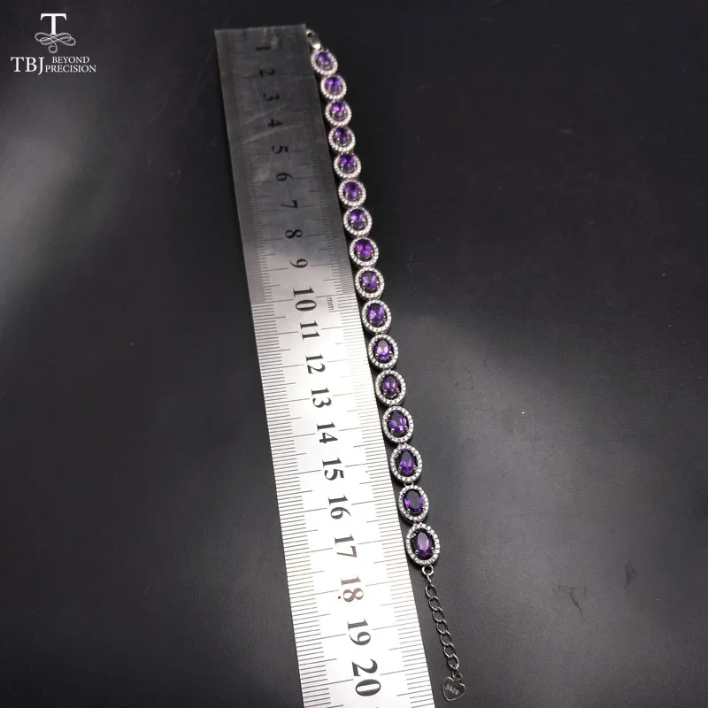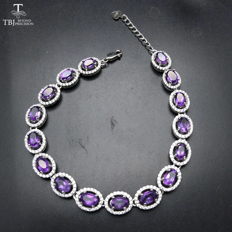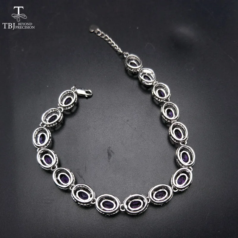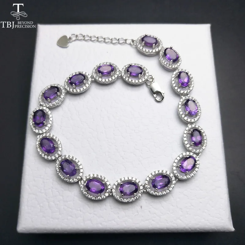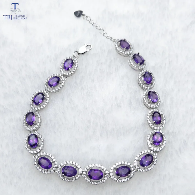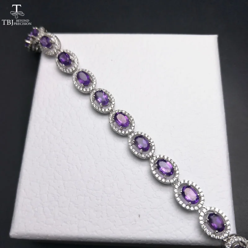 TBJ ,100% natural 16pcs of oval 4*6mm 8 ct amethyst bracelet in 925 silver ,classic design gemstone bracelet with gift box