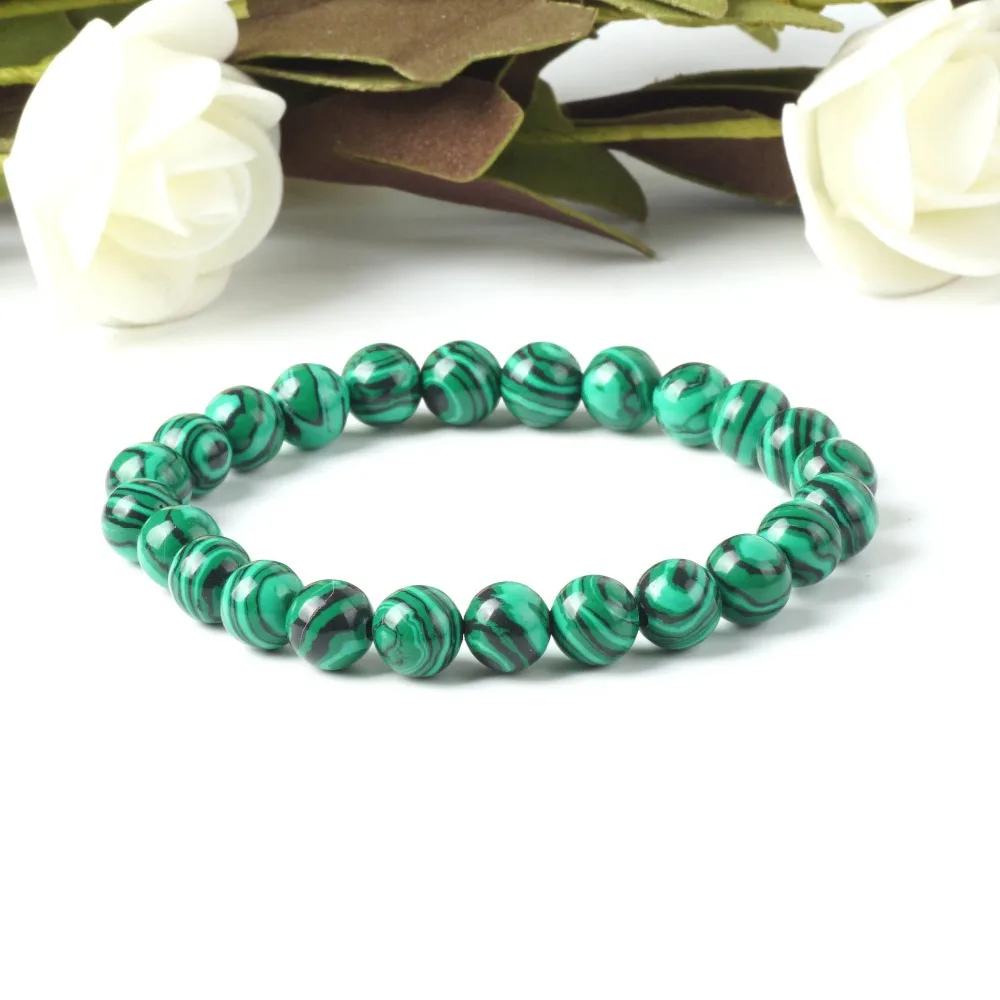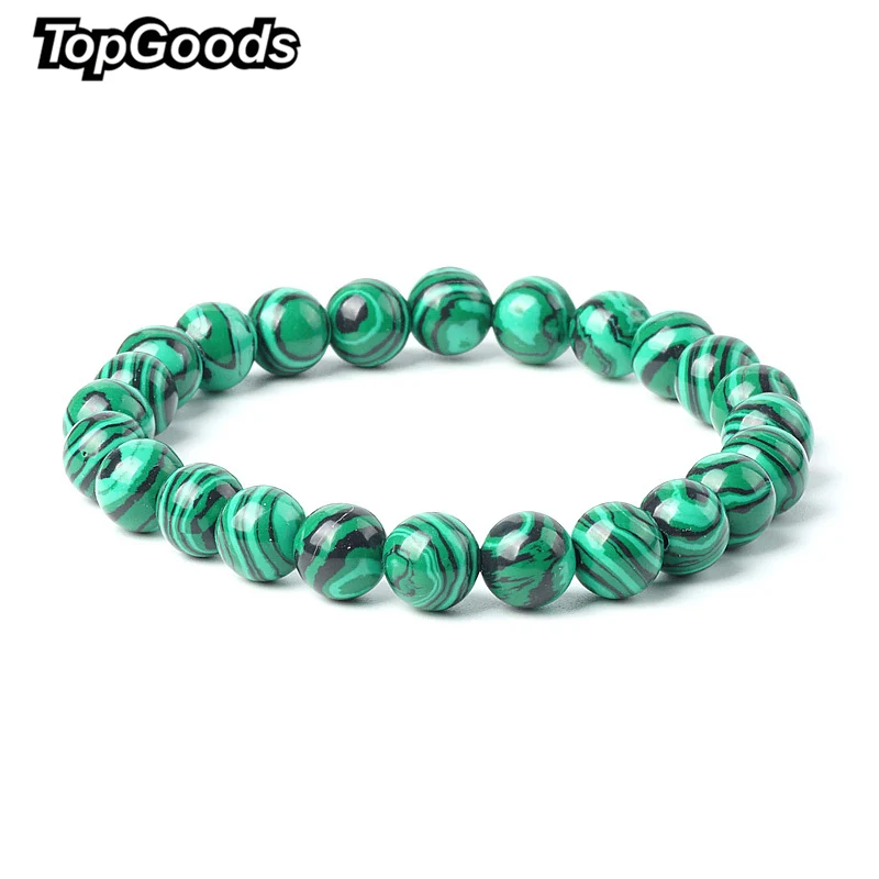 TopGoods 2020 Natural Green Malachite Bracelet Bead Stone Antique Charms Bracelet 8mm Gemstone Jewelry Bracelets for Women Men