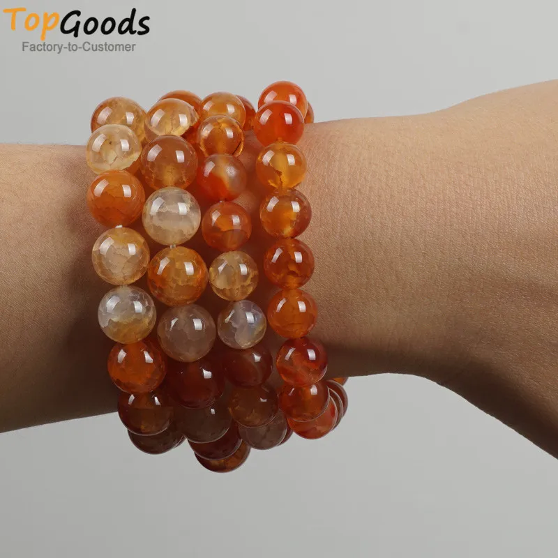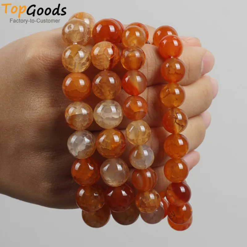 TopGoods Natural Pink Crackle Agate Bracelet Women Jewelry 8mm Casual Yoga Bangles Pulseira Masculina Bracelet For Women