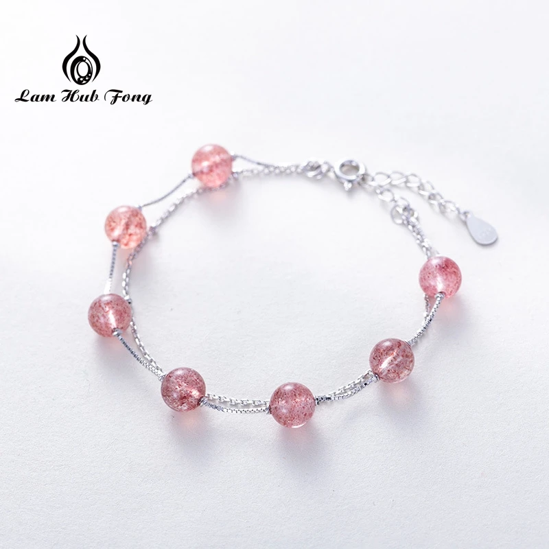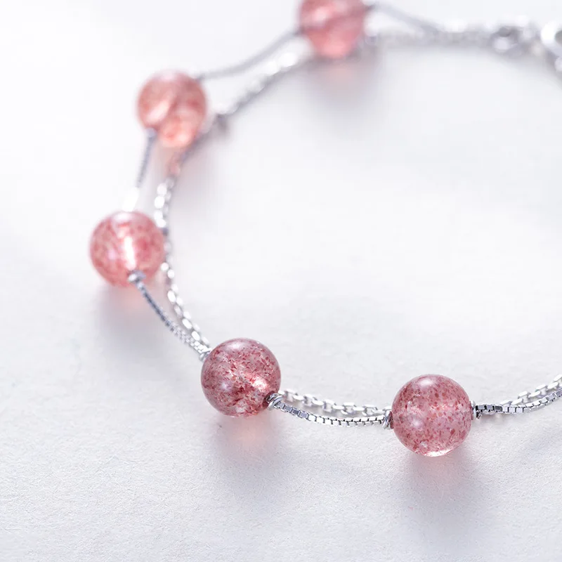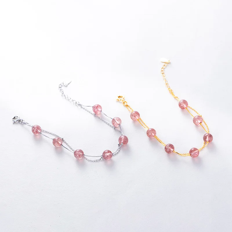 Two Layer Strawberry Natural Crystal Bracelets for Women Gifts 6mm Beads With Trendy 925 Sterling Silver Contracted Jewelry