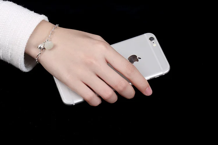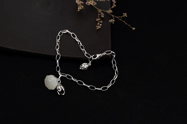 S 925 Sterling Silver Natural Jade Lotus Bracelet Elegant Women Chains Bracelets Charms Jewelry Handmade Floral Bijoux