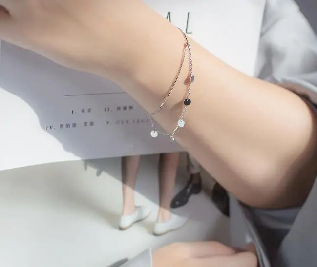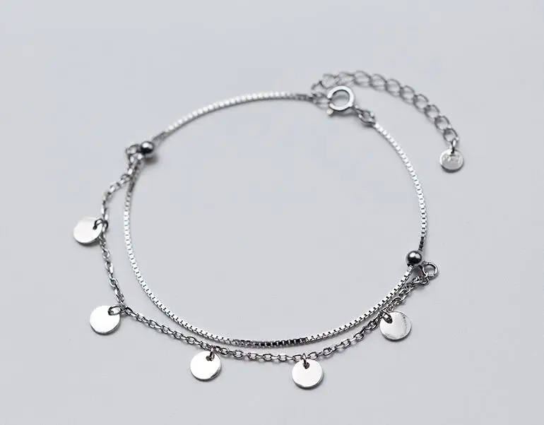 100% Real. 925 Sterling Silver Fine Jewelry Double Rows /Multi-layers with Round Coins Geometric Tassel Chain Bracelet GTLS518