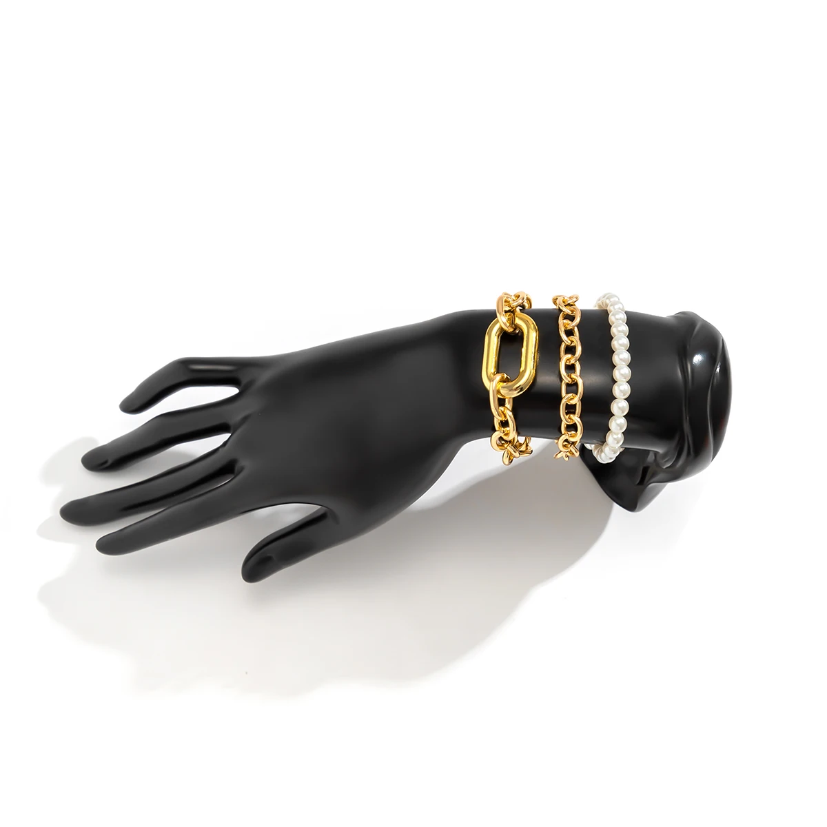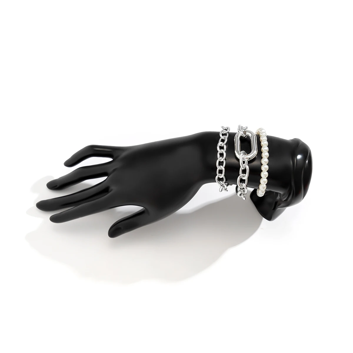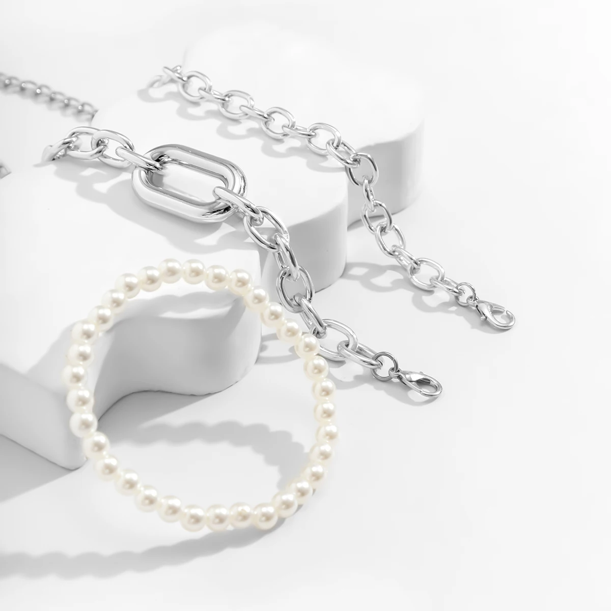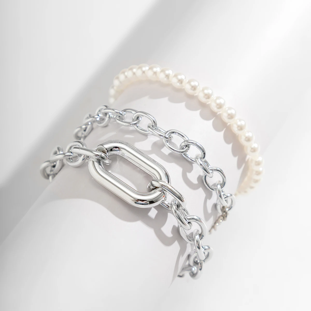 IngeSight.Z 3pcs/set Punk Pearl Beaded Metal Thick Chain Bracelets for Women Gold Color O Shape Charm Cuban Bracelet Bangle