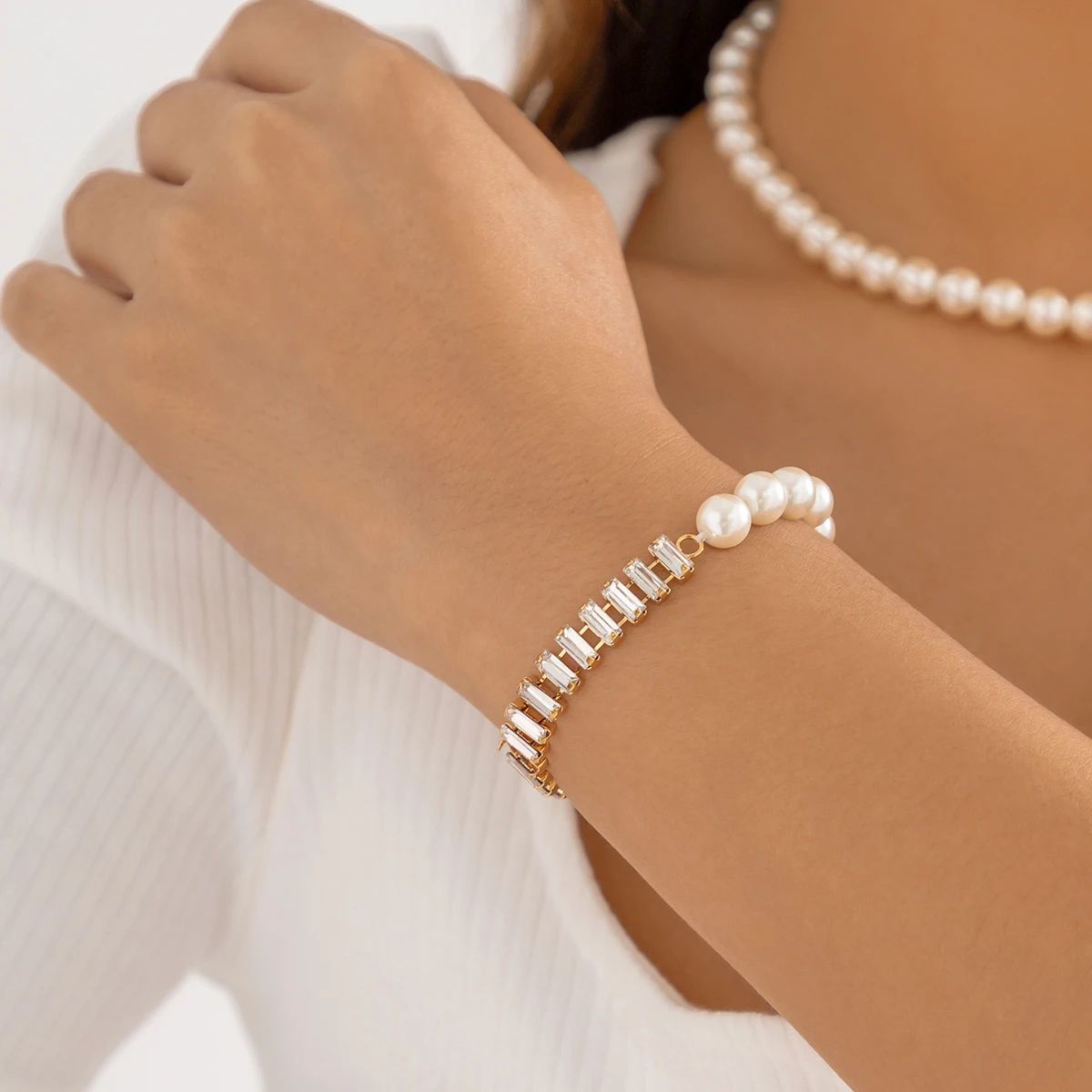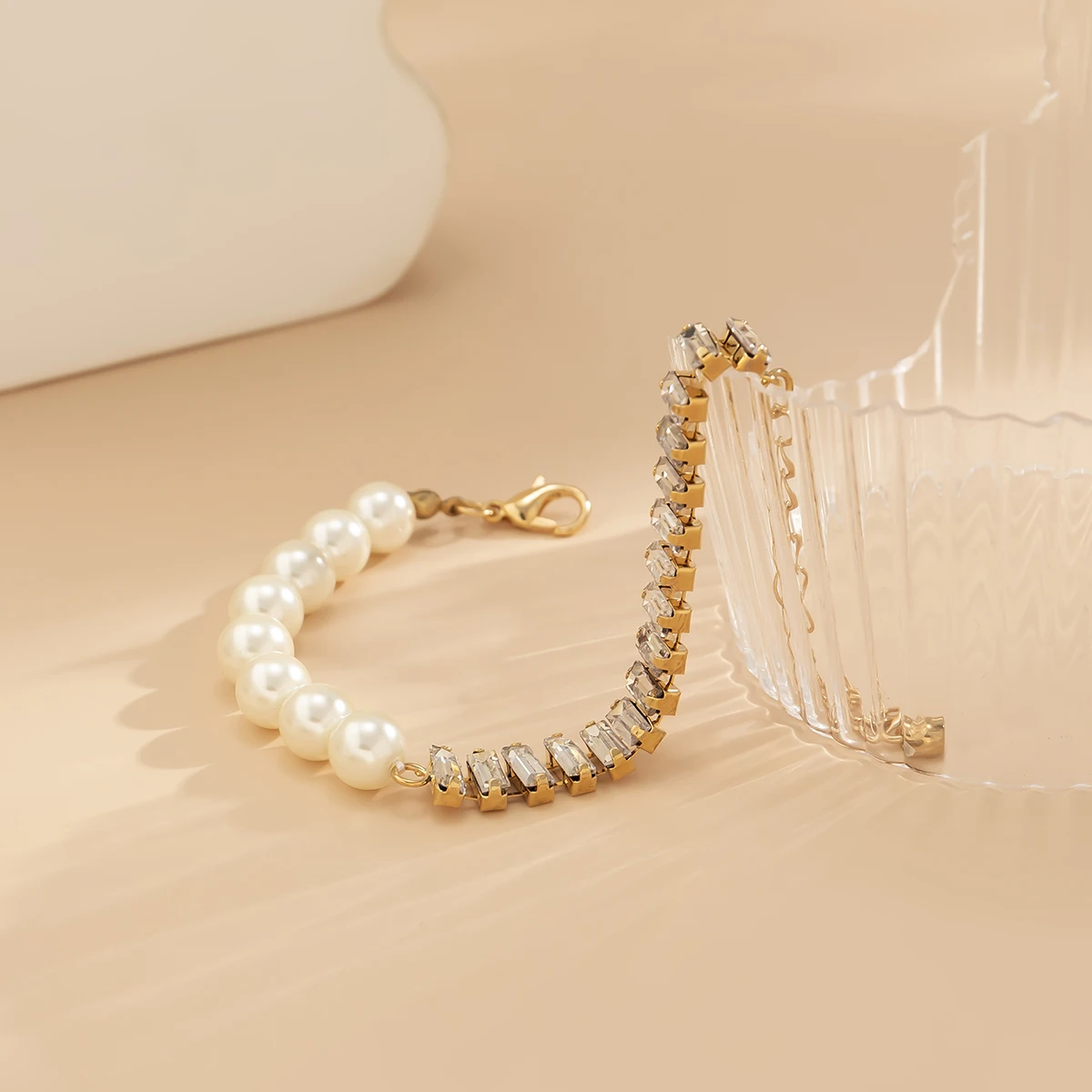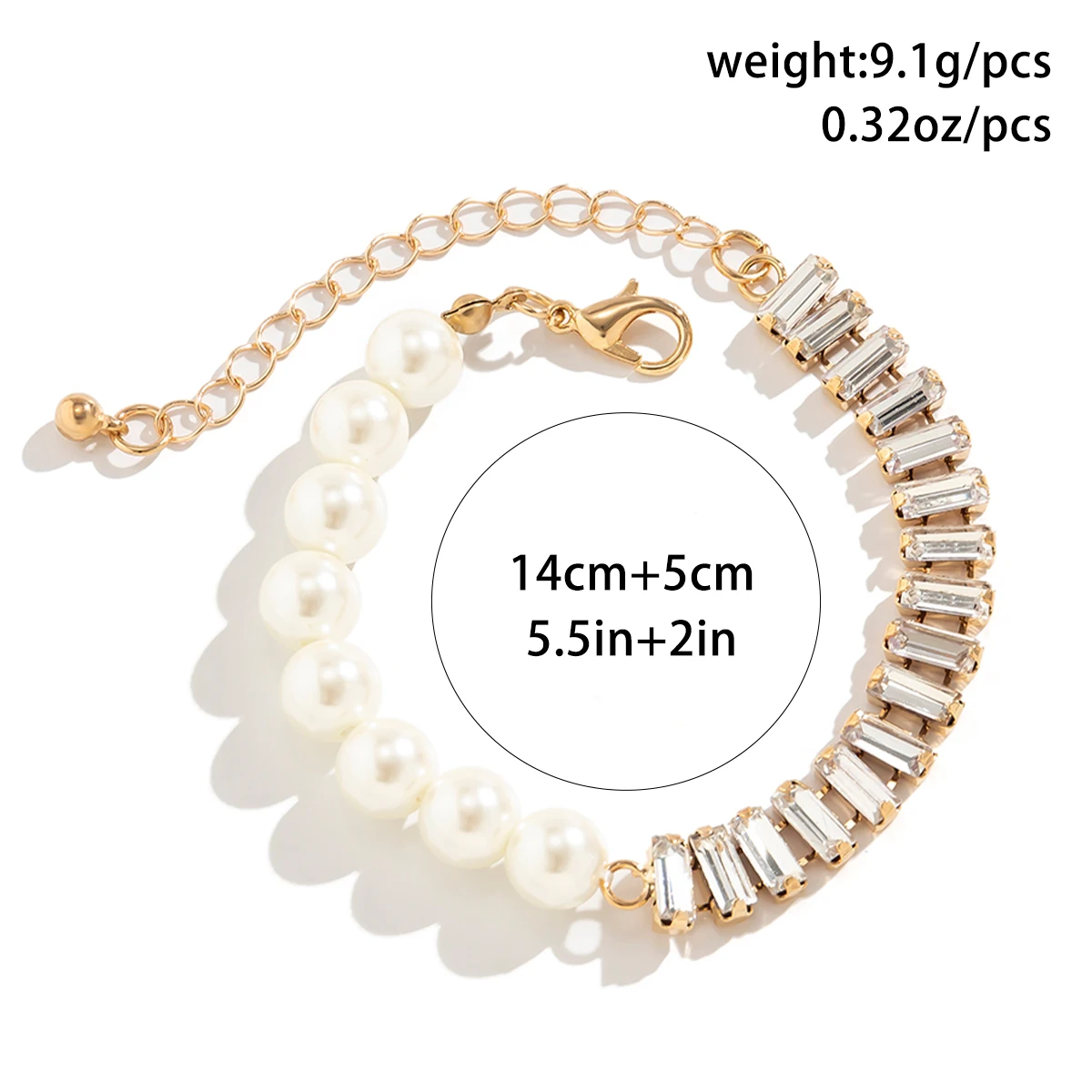 IngeSight.Z Imitation Pearl Cubic Zircon Mixed Chain Bracelet for Women Korean Bracelets Jewelry Gift