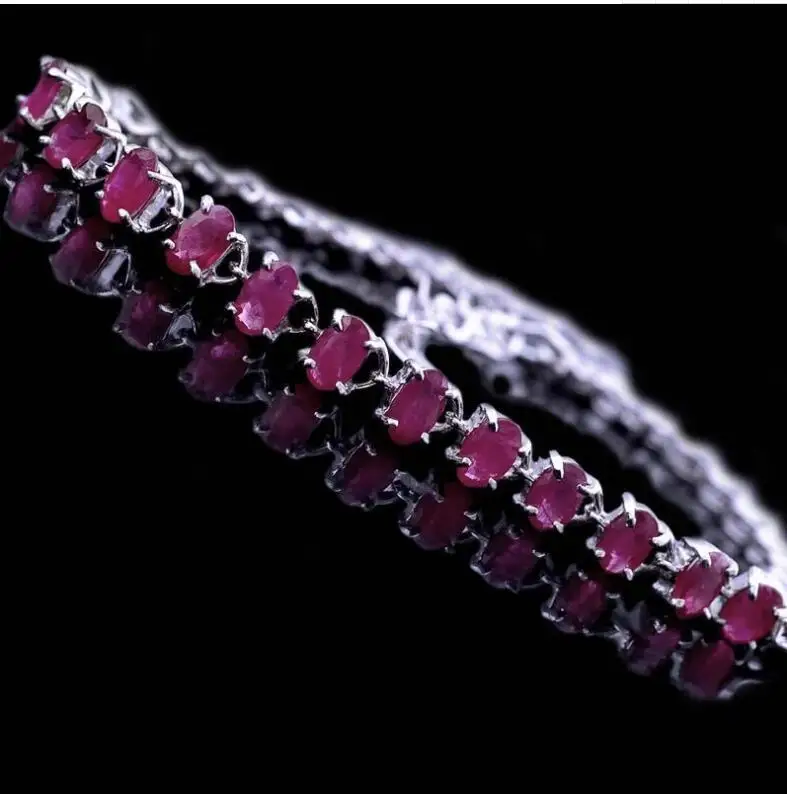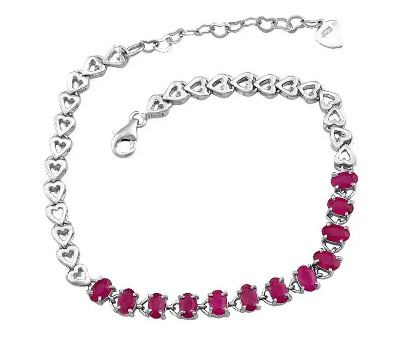 Real ruby bracelet Free shipping Natural and real ruby Chain bracelet 925 sterling silver 3*5mm 12pcs