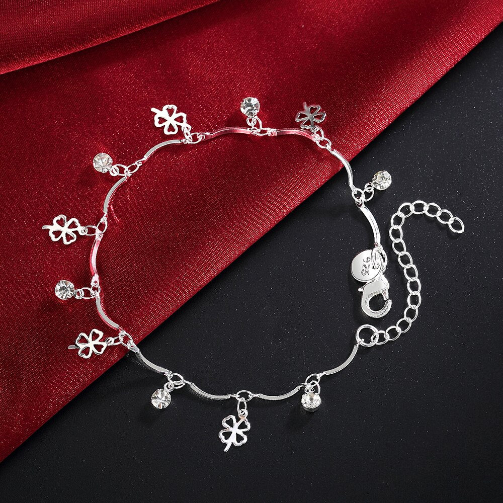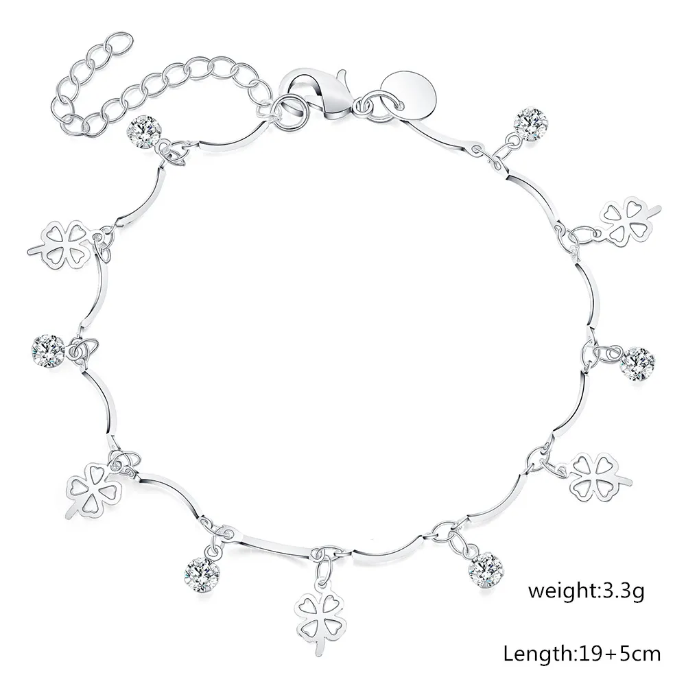 Street trend 925 sterling Silver lucky clover leaf zircon Chain Bracelet for Women Wedding Party gifts fine Jewelry