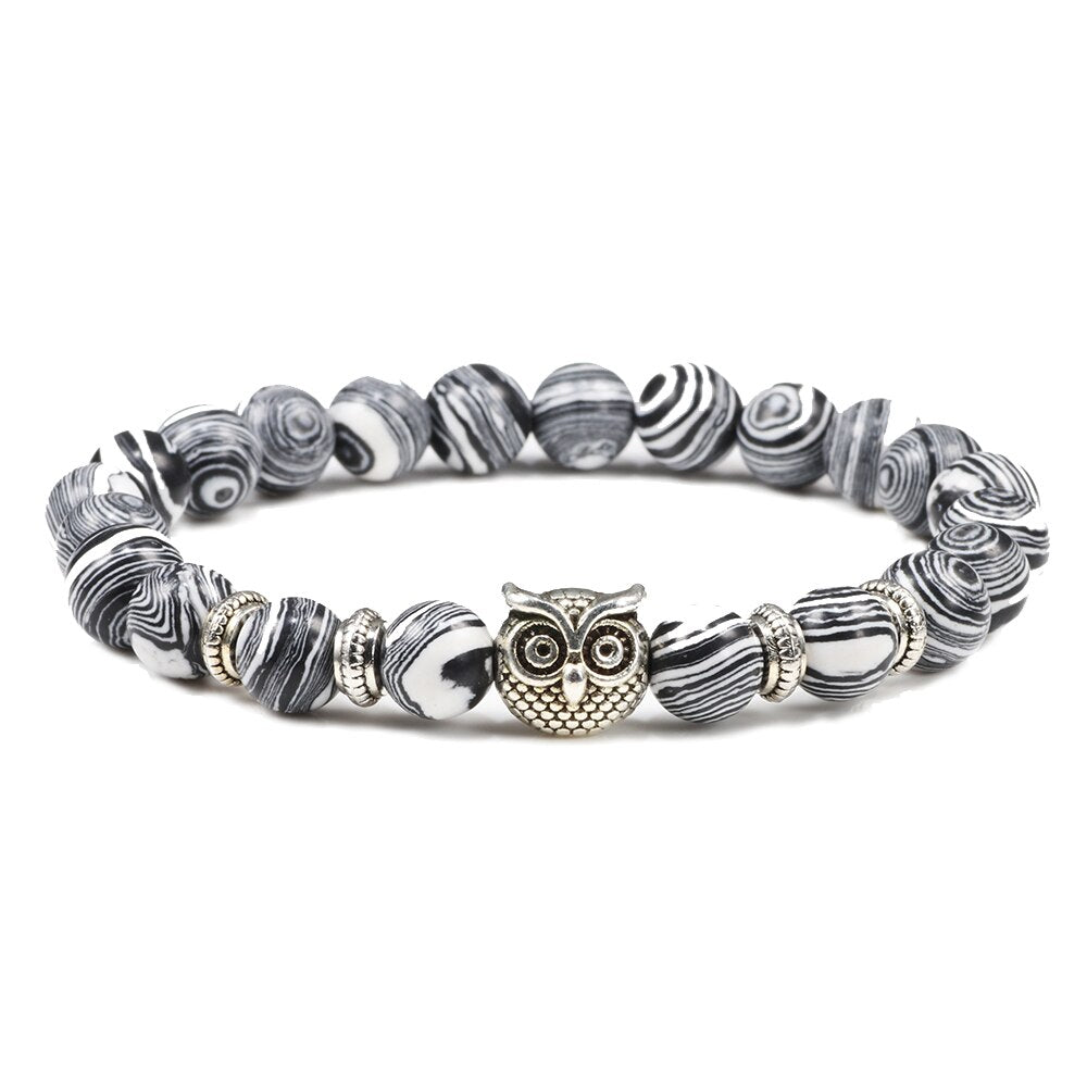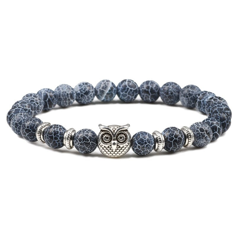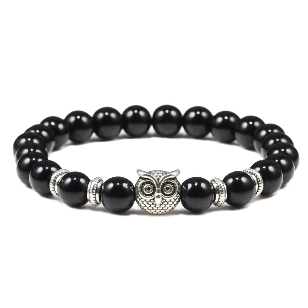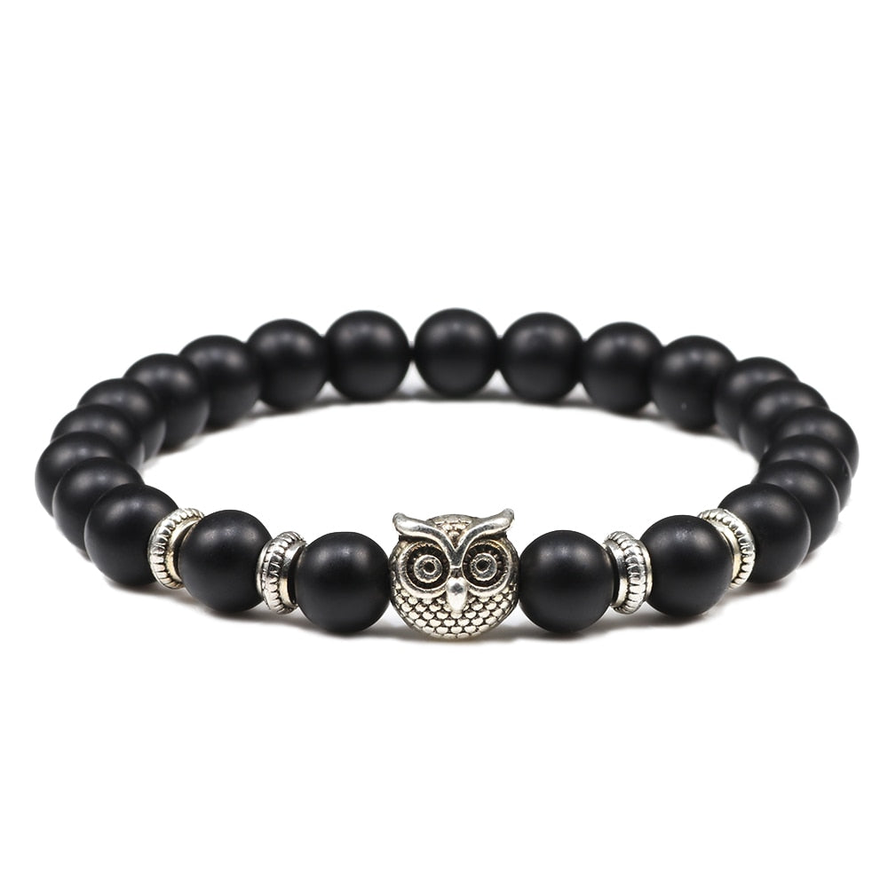 Black Lava Tiger Eye Weathered Stone Bracelets Bangles Classic Owl Beaded Natural Charm Bracelet for Women and Men Yoga Jewelry