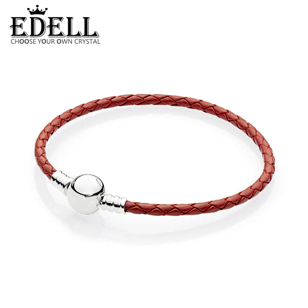 100% 925 Sterling Silver 590745CRD-S Red Braided Leather Charm Bracelet Original Women's Jewelry Fashion Wedding