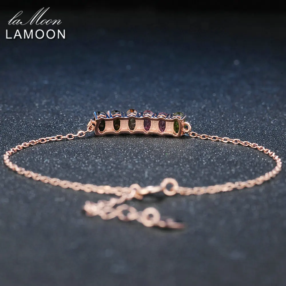 Charm Bracelet Classic 100% Natural 6pcs Multi-Color Oval Tourmaline 925 Sterling Silver Fine Jewelry Women Bracelets New