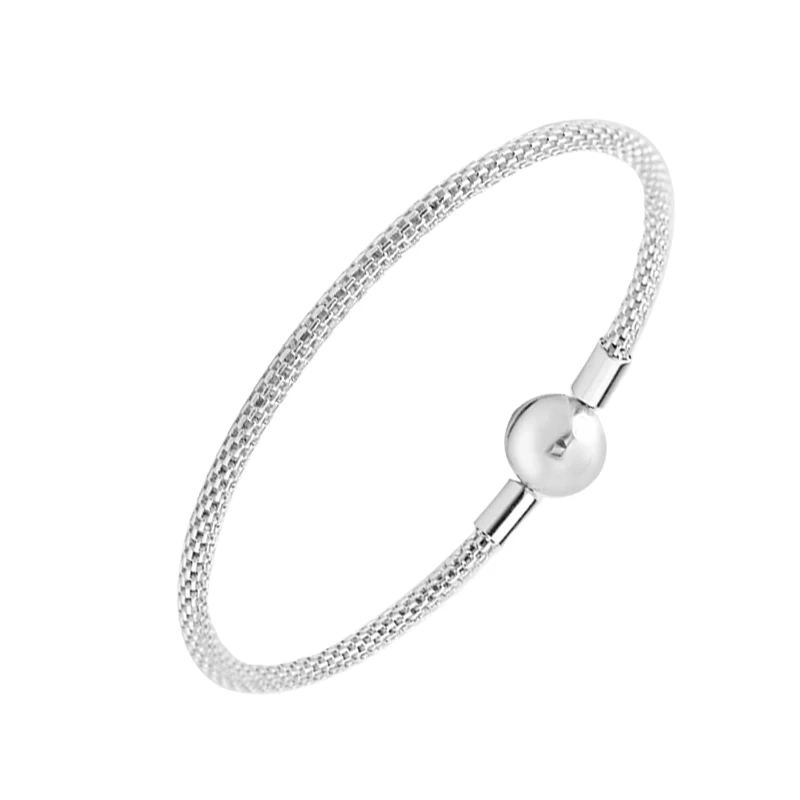 MOMENTS Sterling Silver Mesh Bracelet for woman DIY fashion 925 Sterling silver jewelry making Fit Europe beads