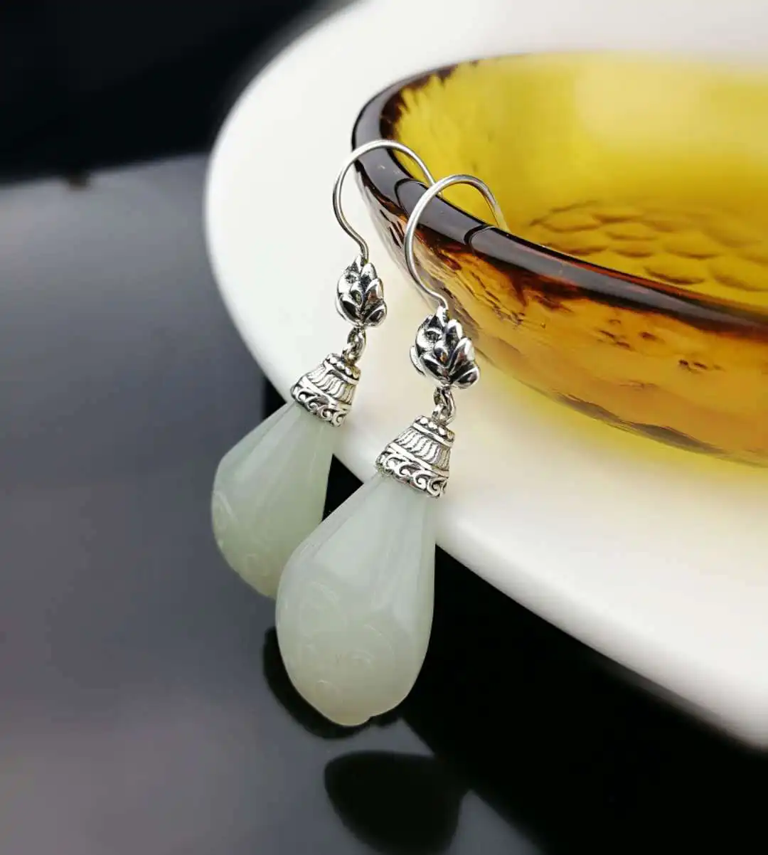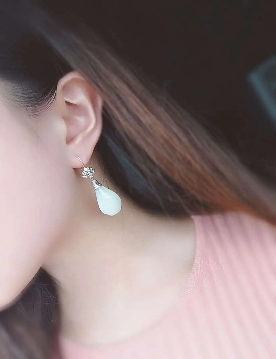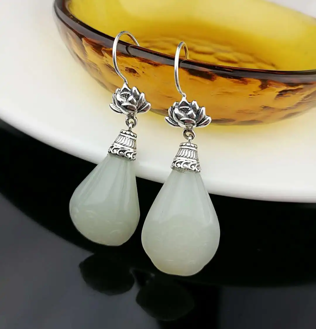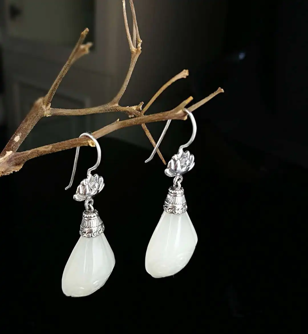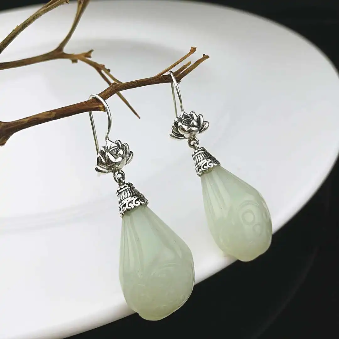 2020 Earings Fashion Jewelry S925 Inlaid Original Fashion Natural New Lotus Jade Earrings Personalized Ladies Simple Wholesale