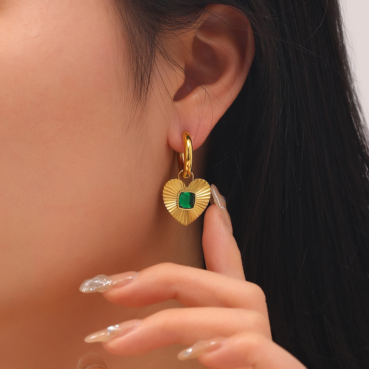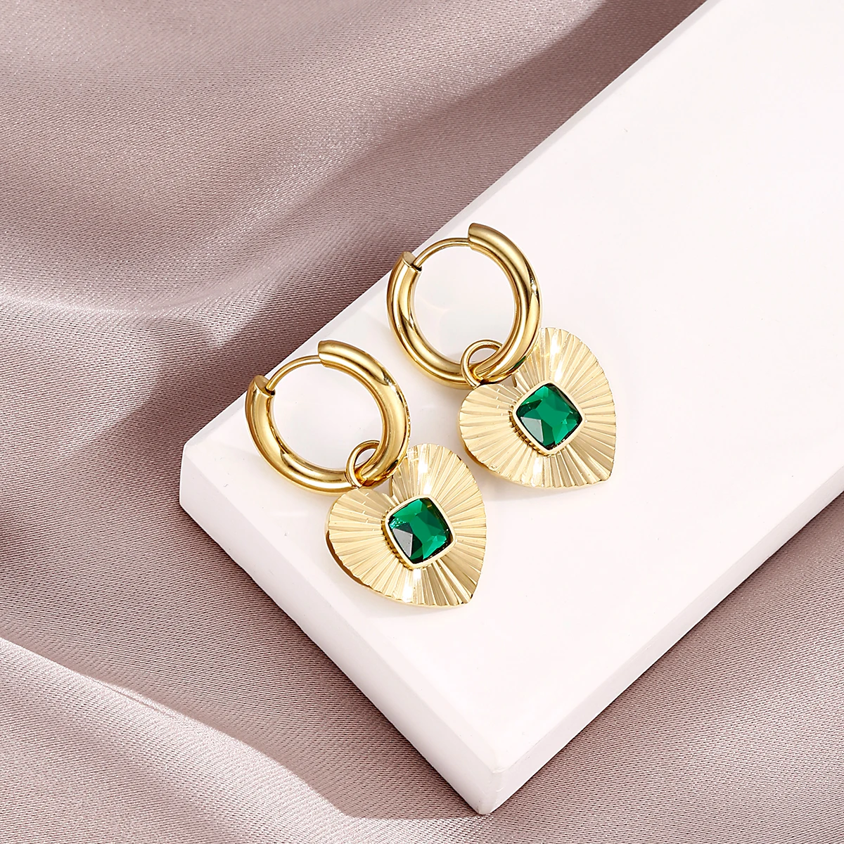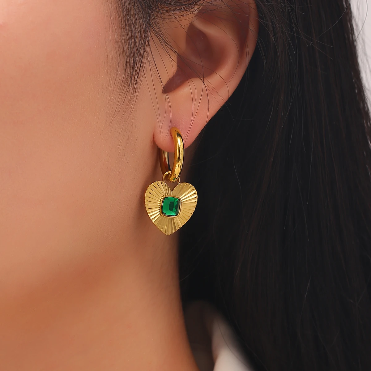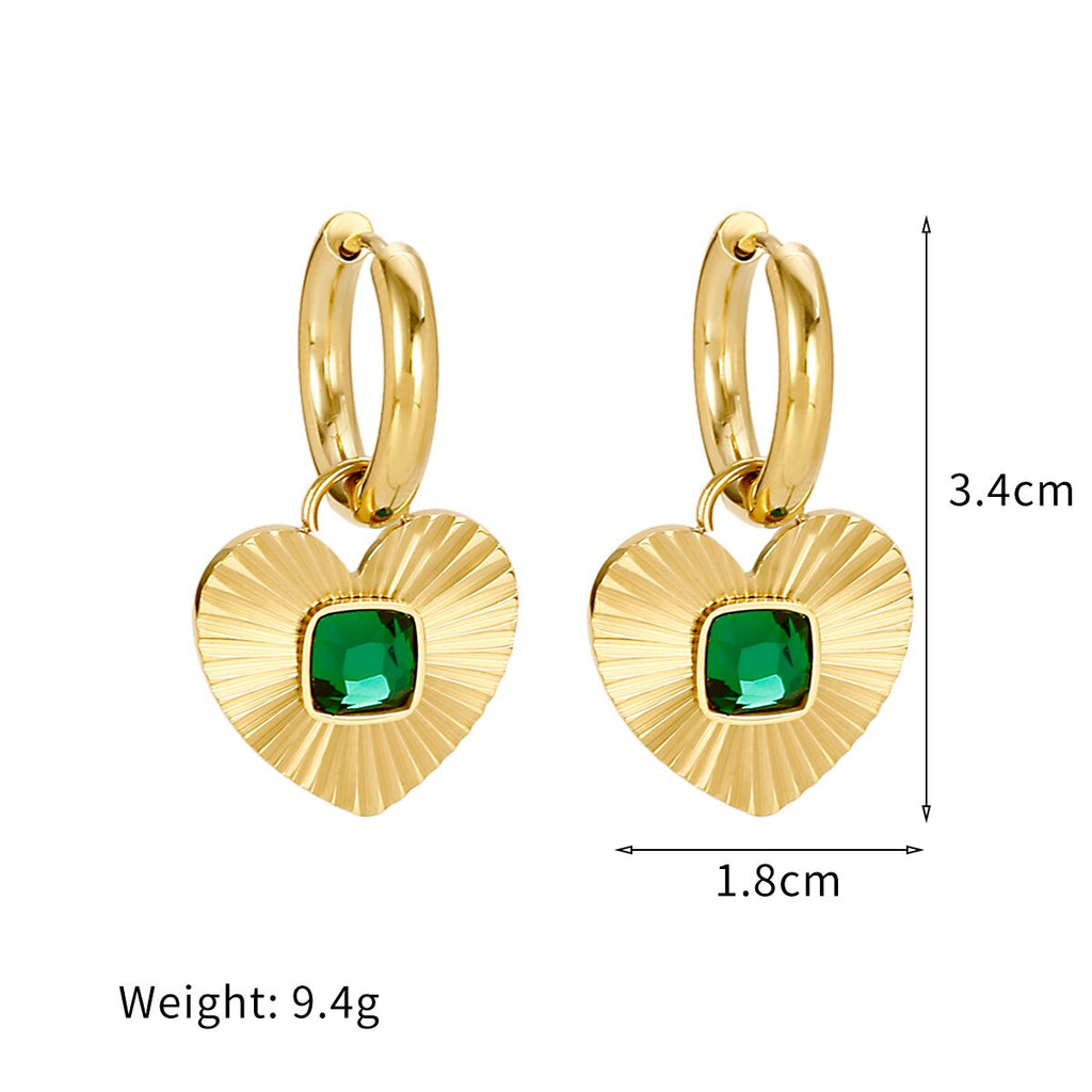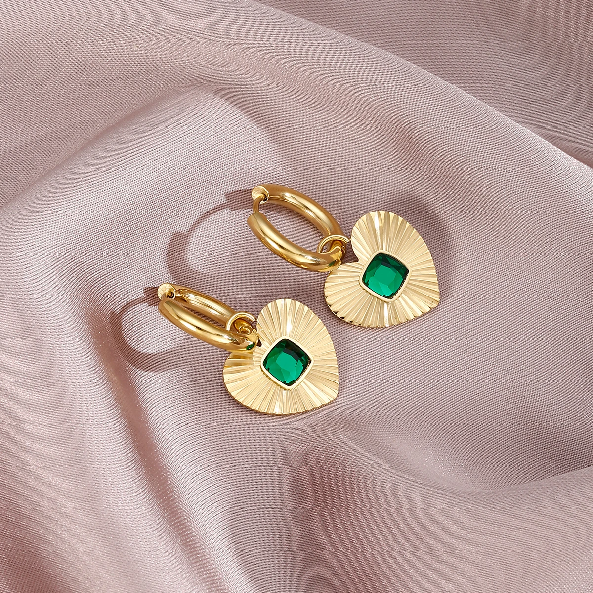 316L Stainless Steel Heart Hoop Green Zircon Earrings For Women Girls Ears Jewelry Birthday Party Gifts Bijoux Trend