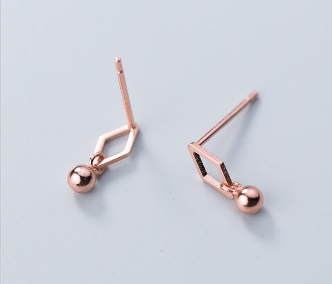 3MM SMALL 1PAIR Authentic Real 100% 925 Sterling Silver fine Jewelry Geometric Open rhombus &bead dangle Earrings GTLE2355