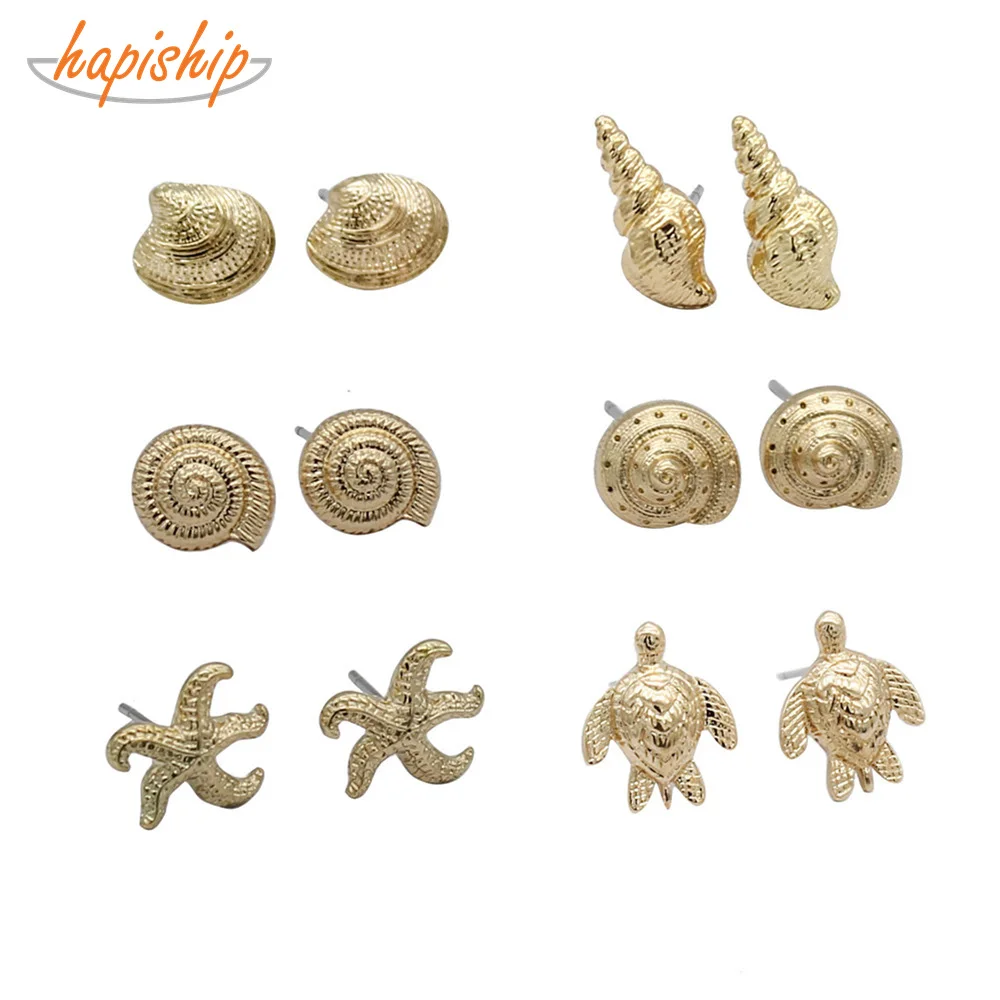 2020 New Women Fashion Jewelry Gold Tone Starfish Tortoise Shell Conch Stud Earrings AD08 Gift for Girls Lady