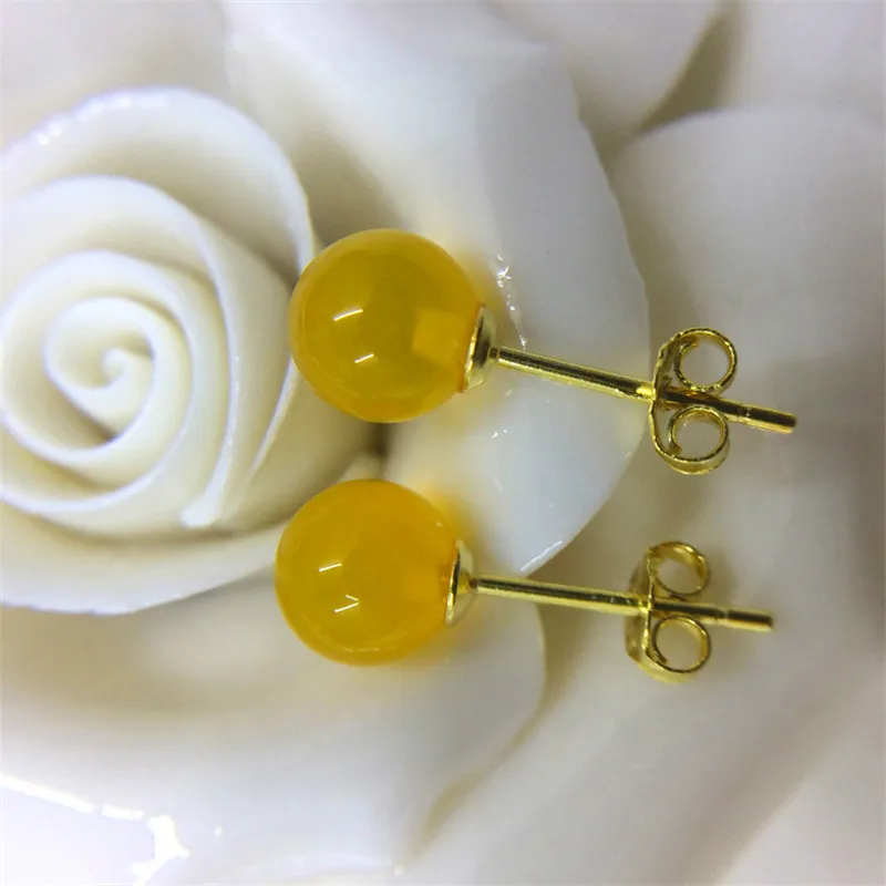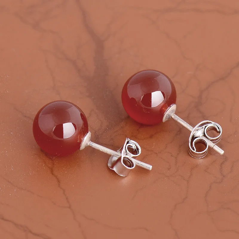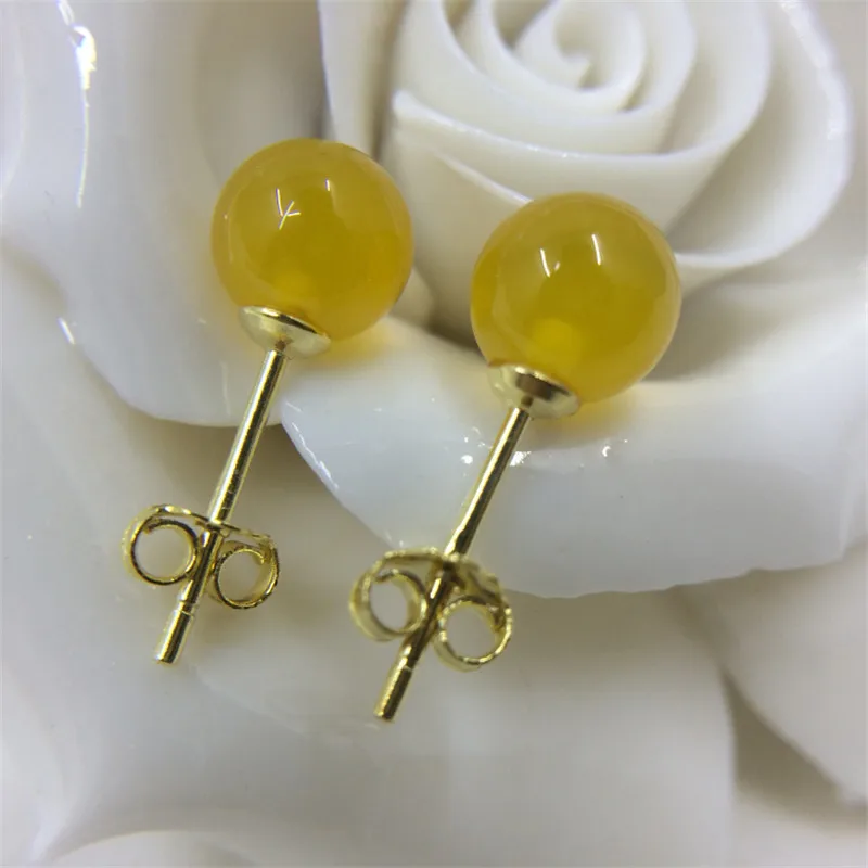 6mm S925 Sterling Silver Fine Jewelry Stud Earrings For Women Small Natural Red Agate Yellow Chalcedony Round Bead Aretes