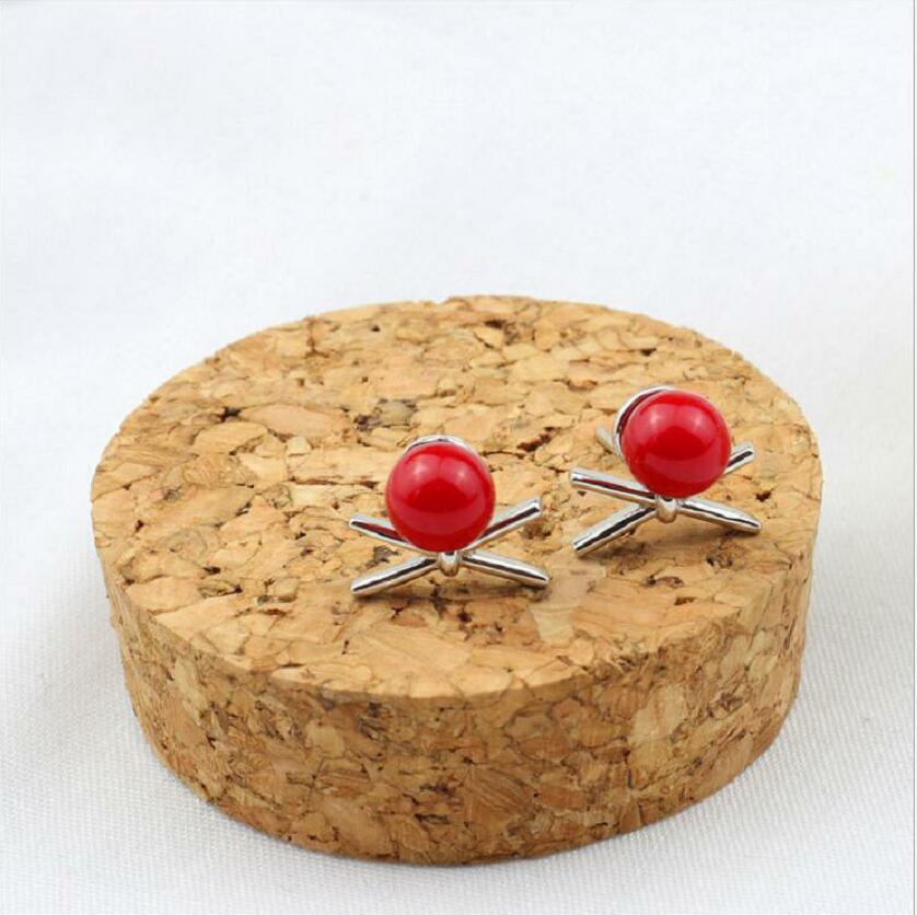 925 silver earrings female Korean personality sweet little red bean bow mother bead ear studs J0318