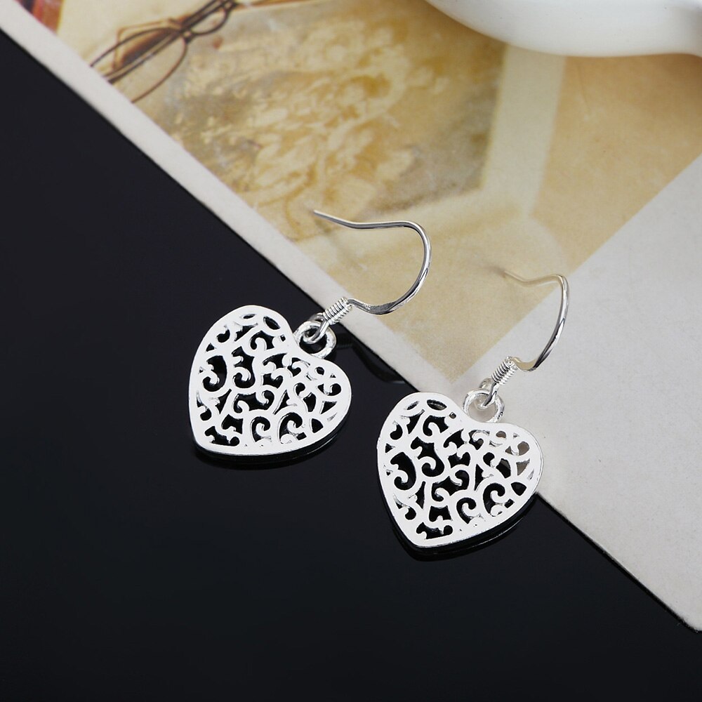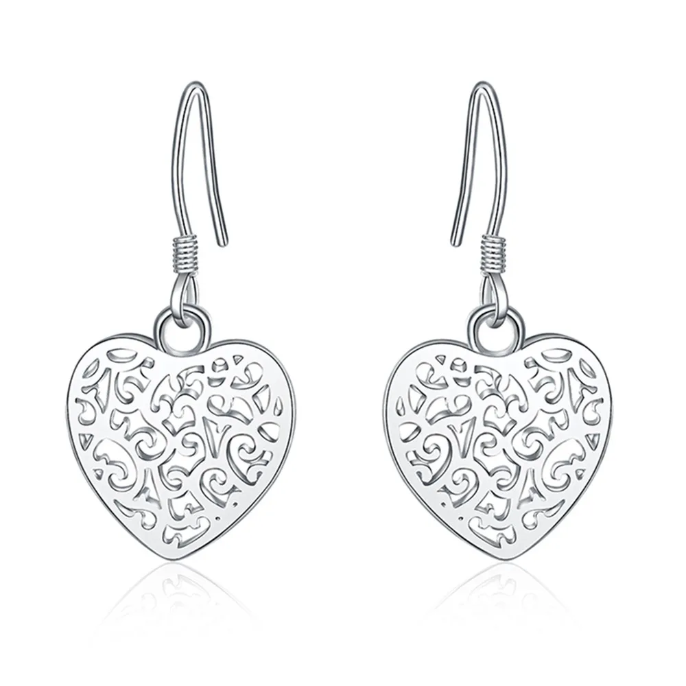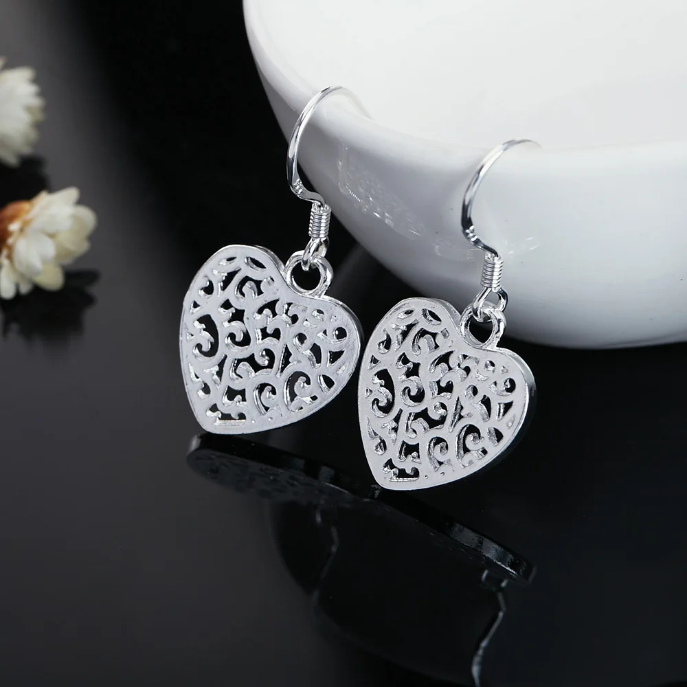 925 Stamp Silver Color Women's Hollow Heart Dangle Earrings Jewelry 2022 Trend Jewelry For Women Christmas GaaBou