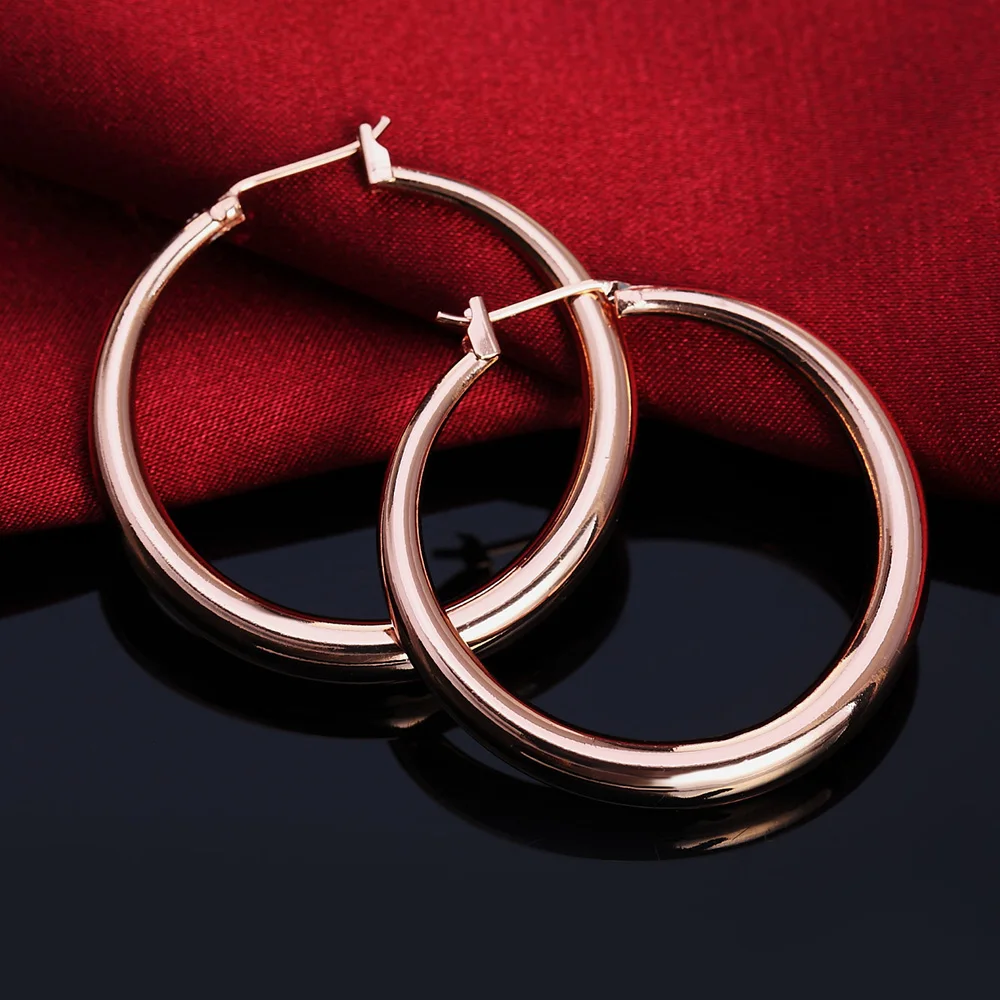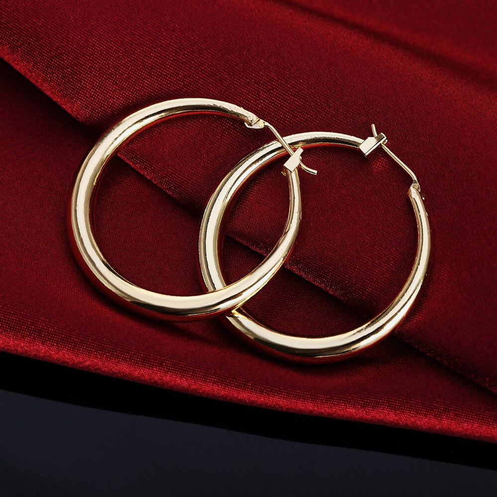 925 Sterling Silver charms 3.5cm circle hoop earrings 18K gold plated party Jewelry Wedding Christmas Gifts