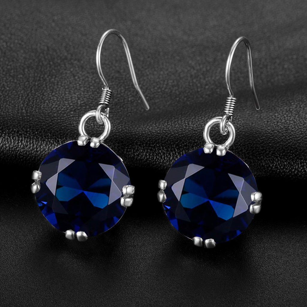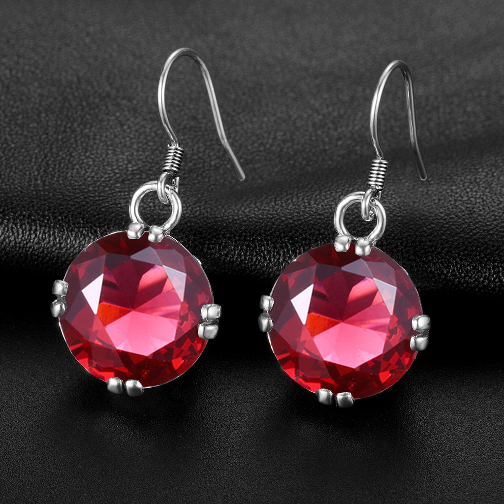 925 Sterling Silver Earrings Women Wedding Party Jewelry Created Ruby Sapphire Stone Lady Drop Earrings Bridal Jewelry Eardrops