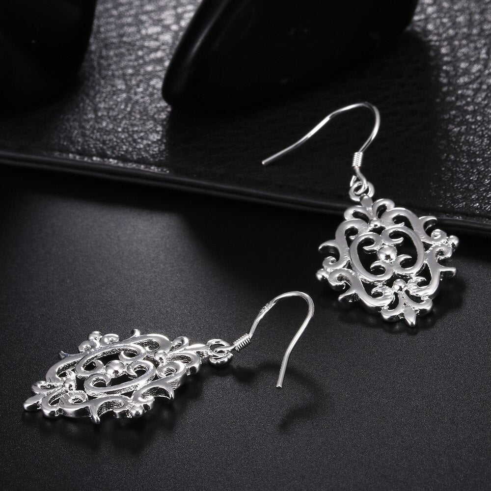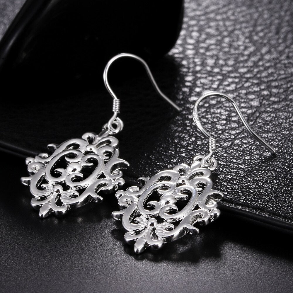 925 Sterling Silver elegant Retro window grilles earrings for women party wedding Jewelry Holiday gifts