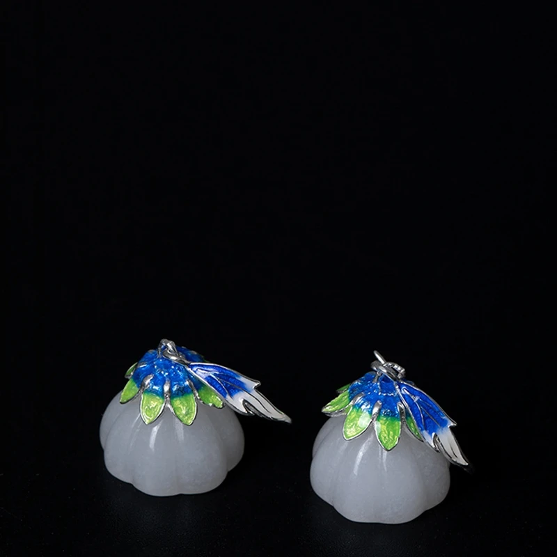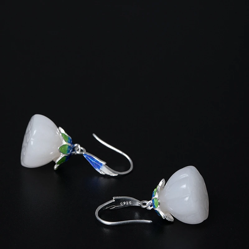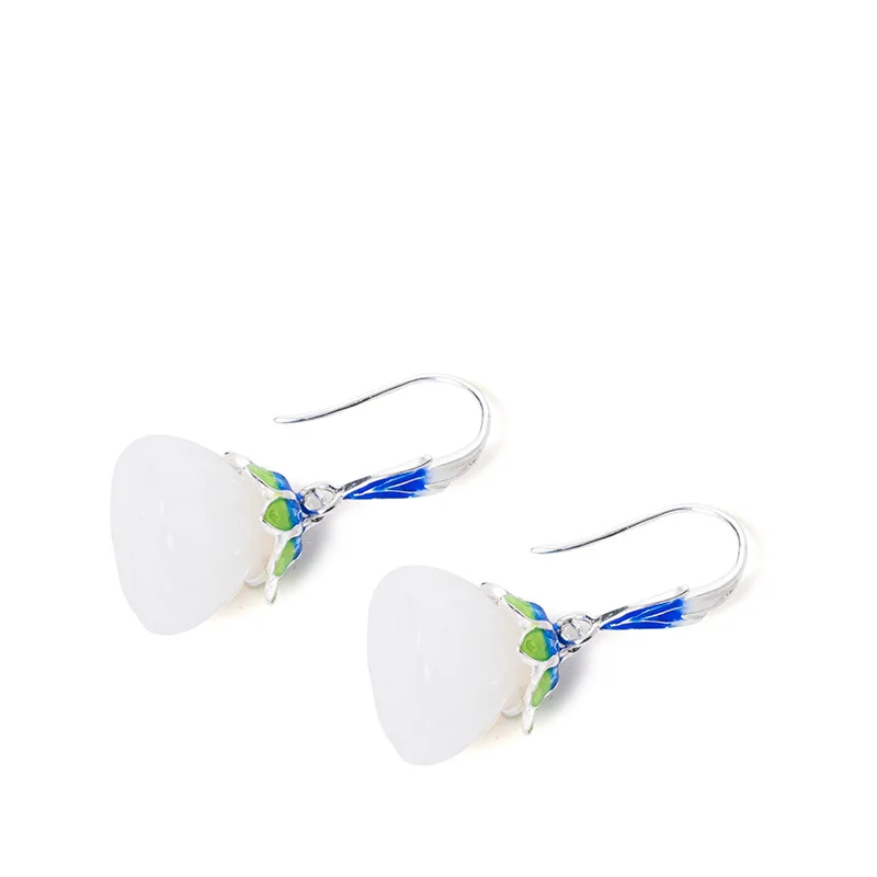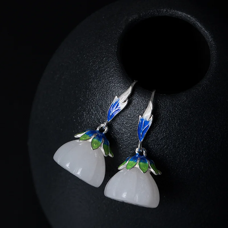 925 sterling silver Ethnic enamel jade earrings luster jade fine enamel wild design charms temperament drop earrings jewelry