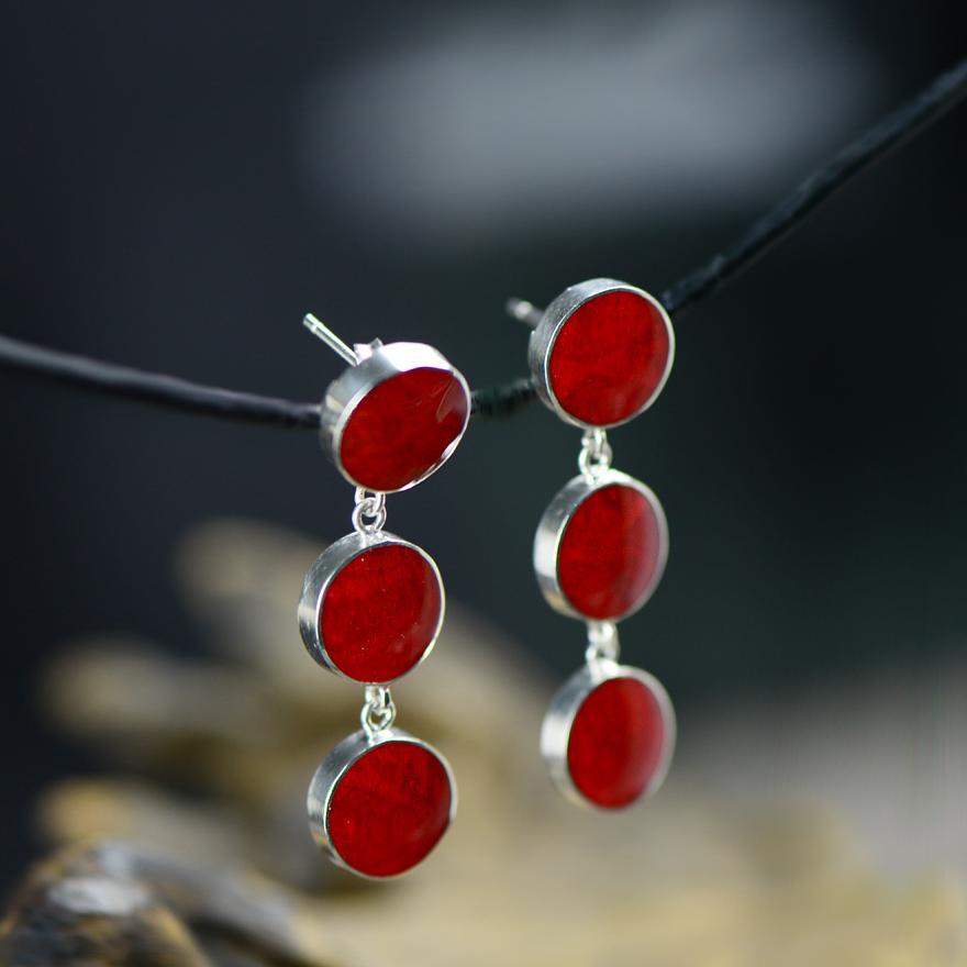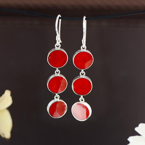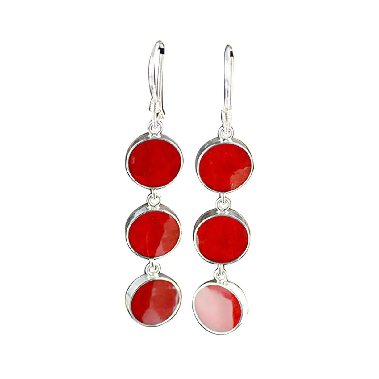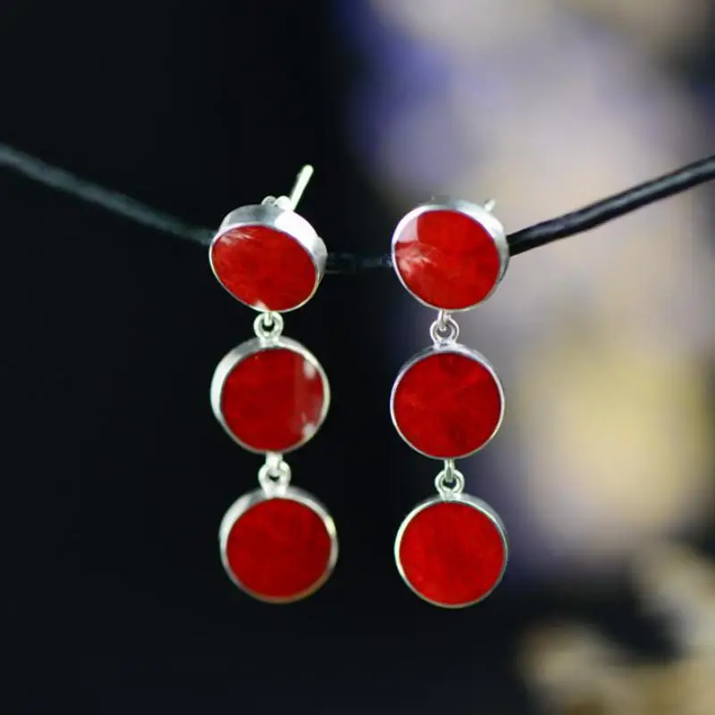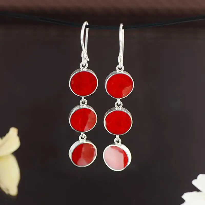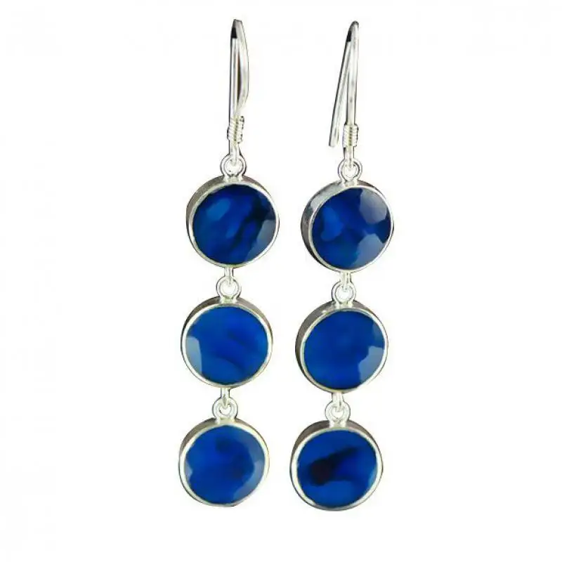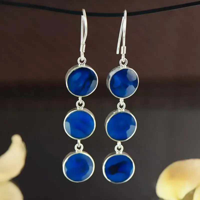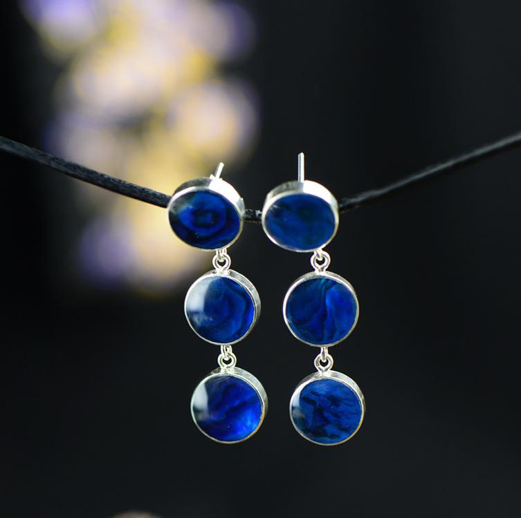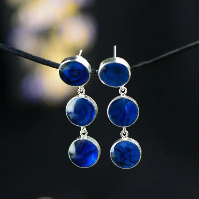 925 Sterling Silver Jewelry Abalone Shell Earrings Long Original Classical Round Shaped Handmade Mosaic Earrings For Women