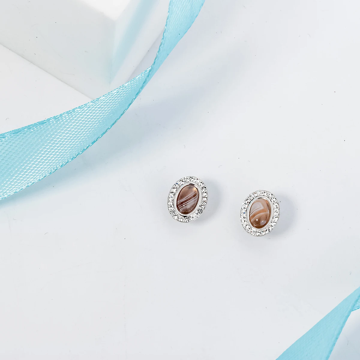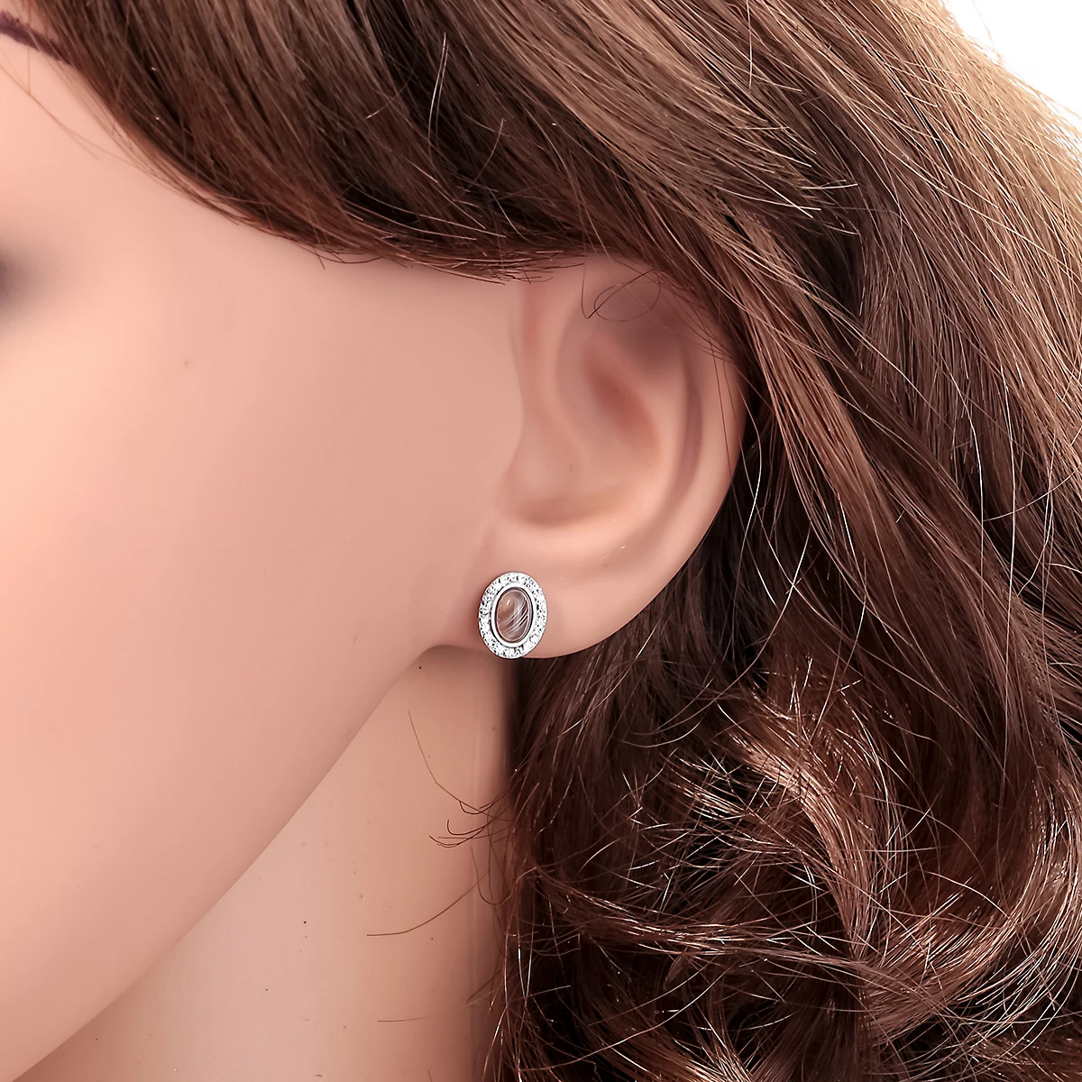 925 Sterling Silver Natural Agate Amazonite Spectrolite Easter Egg Stud Earrings Gifts Women Her Girls Fine Jewelry