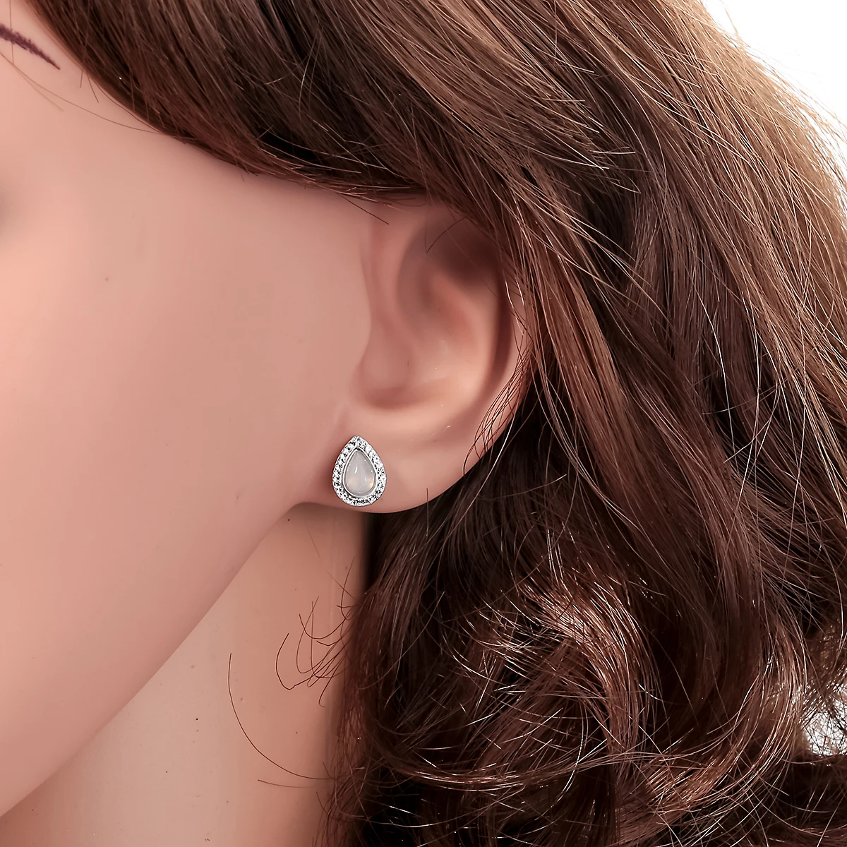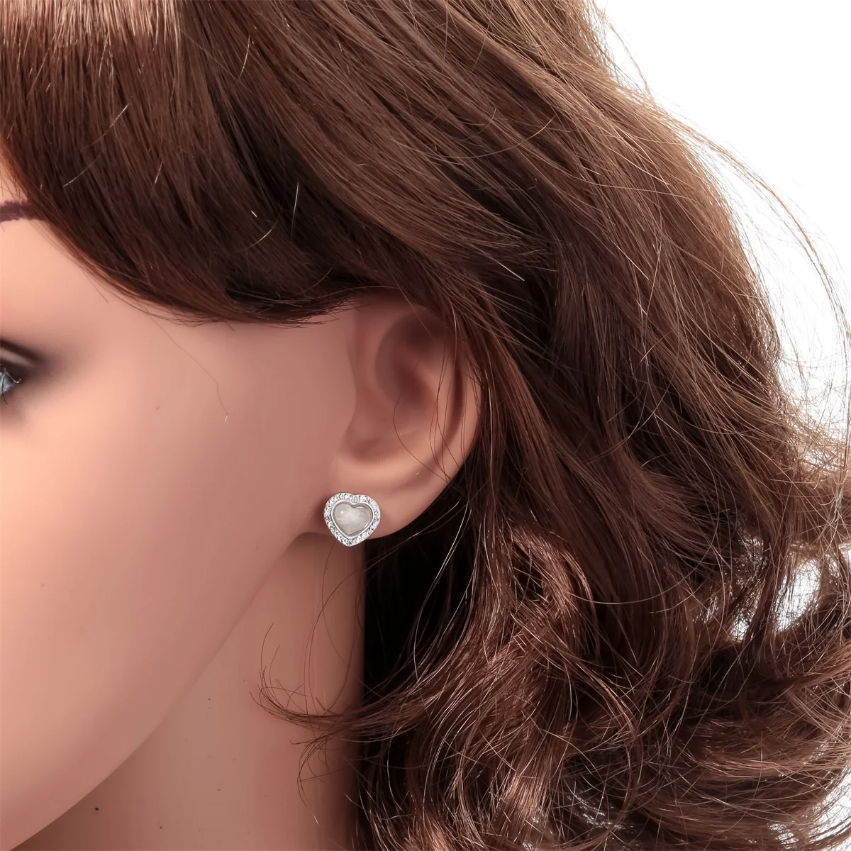 925 Sterling Silver Natural Moonstone Heart Stud Earrings Valentines D Gifts Women Her Teardrop Fine Jewelry
