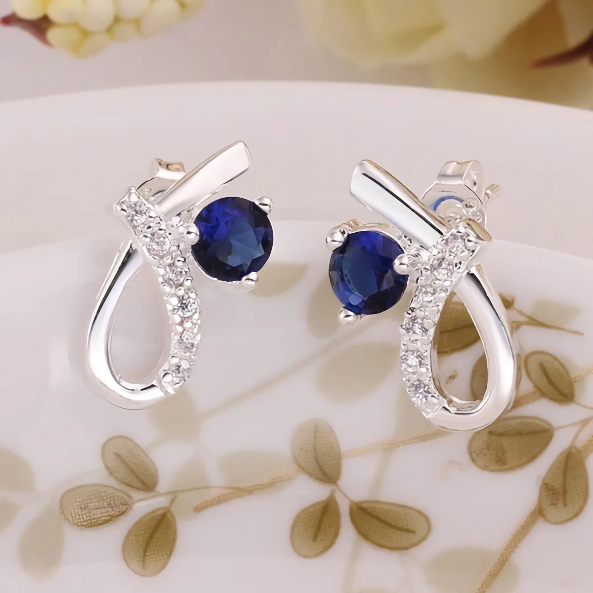 925 Sterling Silver Original pretty blue zircon crystal earrings for women party wedding Accessories Jewelry gift