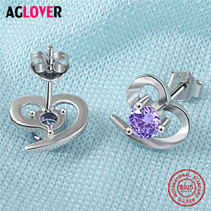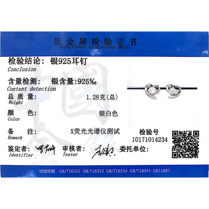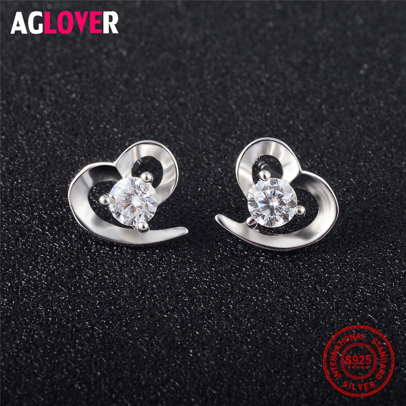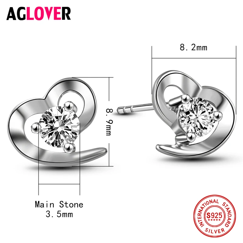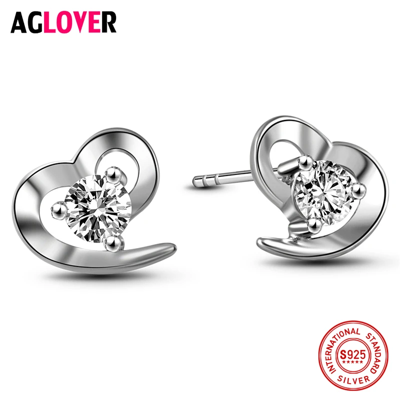 Crystal Earrings 925 Silver Charm Women Heart Earrings 100% Sterling Silver AAA Zircon Fashion Jewelry