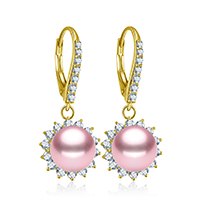 10K Solid Yellow Gold Drop Earring White Pink Purple Pearls Drop Earring Click Back Earring Women Jewelry