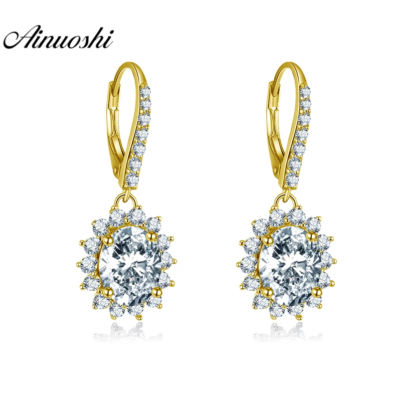10K Yellow Gold Drop Earring 4ct Oval Cut Red Color SONA Diamond Click Back Earring Pierced Earring Jewelry for Women