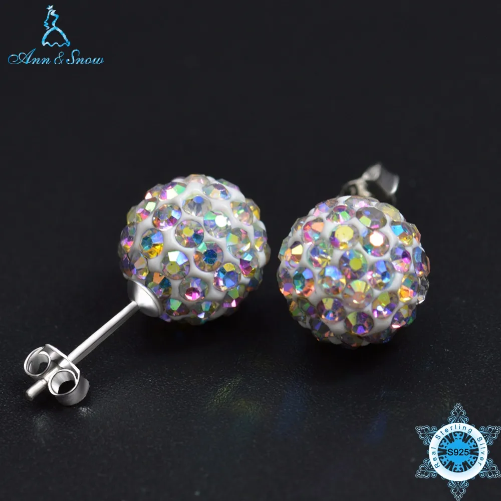 925 Sterling Silver Stud Earrings Crystals Ball Beads Fine Jewelry For Women Cute Style AAA CZ Stone 2020 New Design