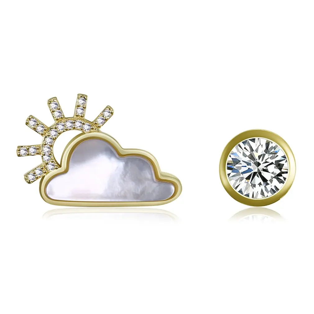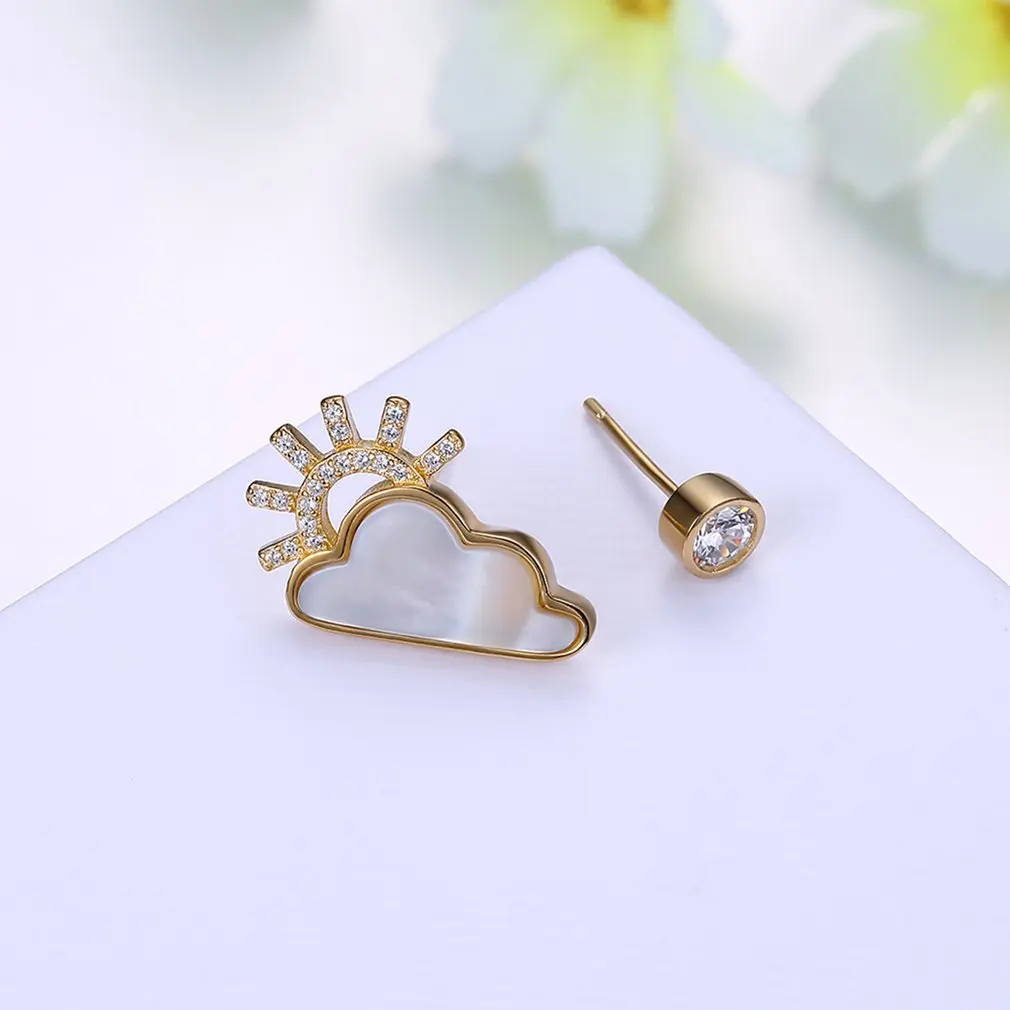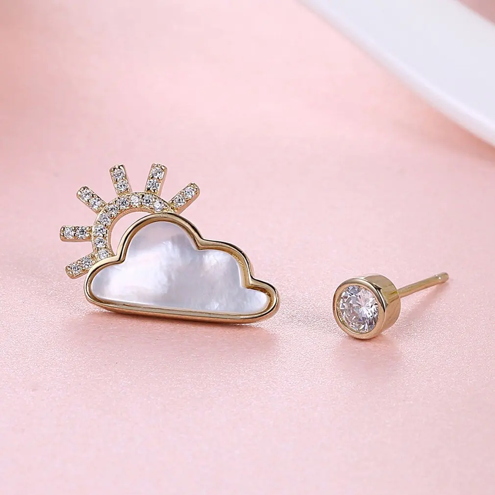 Asymmetric Stud Earrings Sterling Silver Sun And Cloud Shape Ear Studs With Zircon Fine Jewelry fit Wedding For Female Lady Gift