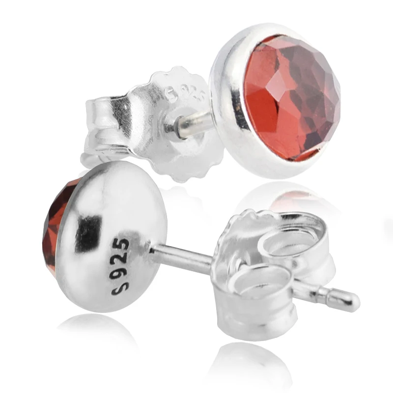 Authentic 925 Sterling Silver January Droplets Earrings With Garnet DIY Fine Jewelry for Women SLE080-1