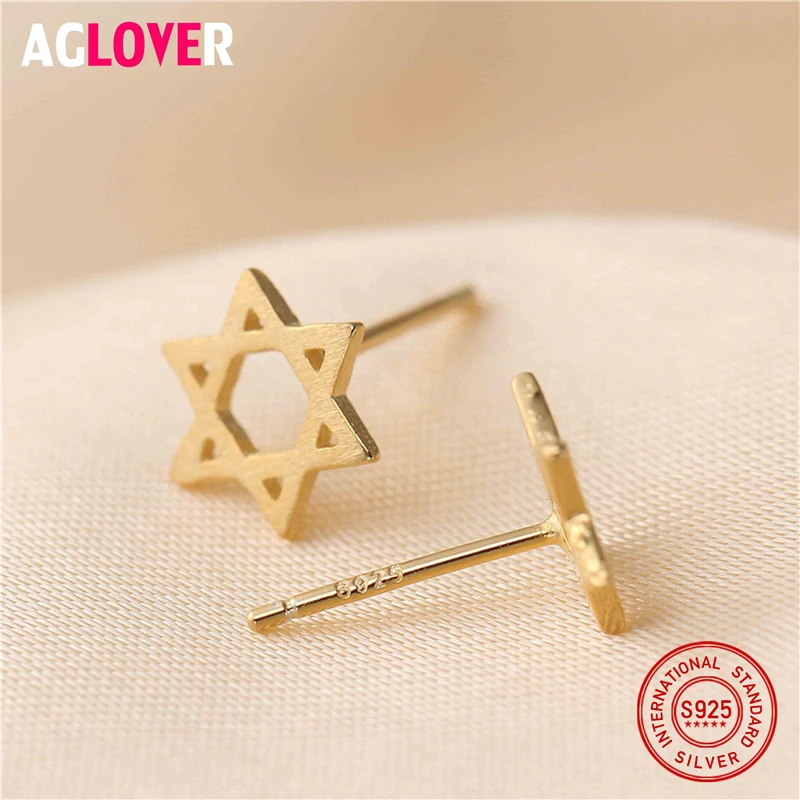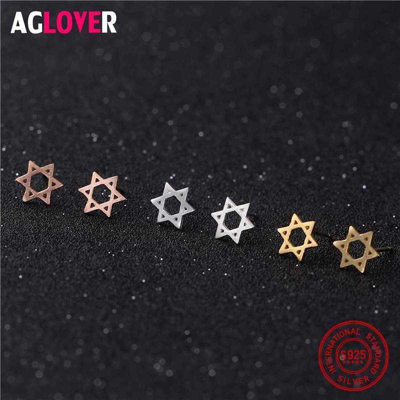Authentic 925 Sterling Silver Women's Jewelry Fashion Tiny 8mmX8mm Hollow Star Stud Earring Gift For Girls Kid Lady Madam