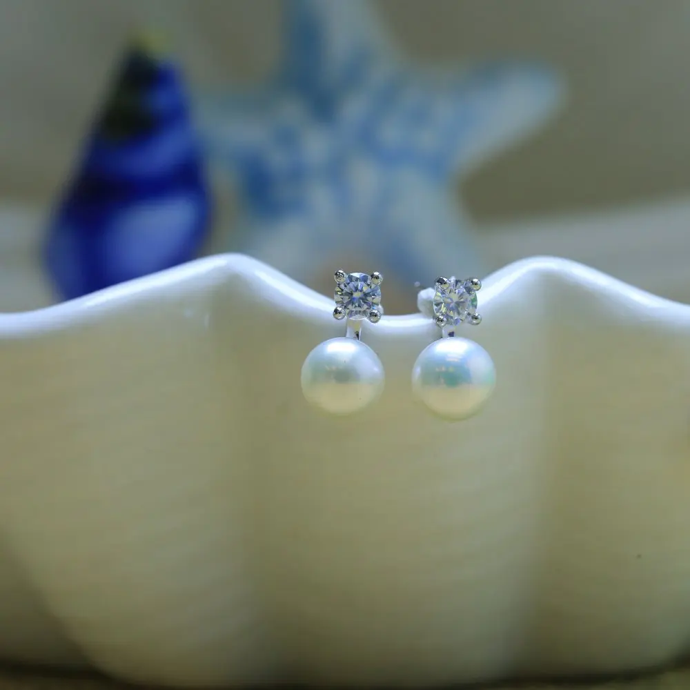 Shinny Studs Earrings 925 Silver Earrings Pearl Earrings Fine Jewelry Gifts for Women New White/Pink/Purple/Black