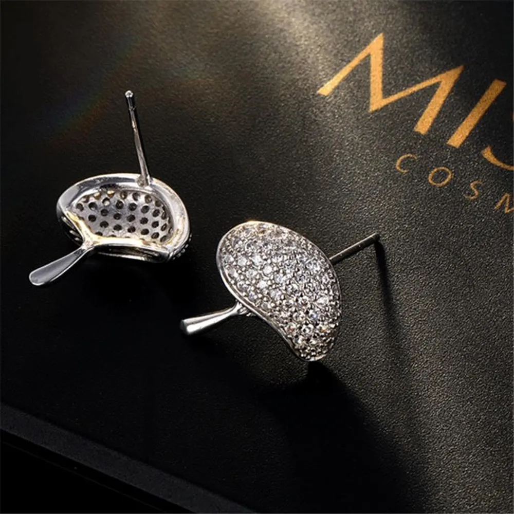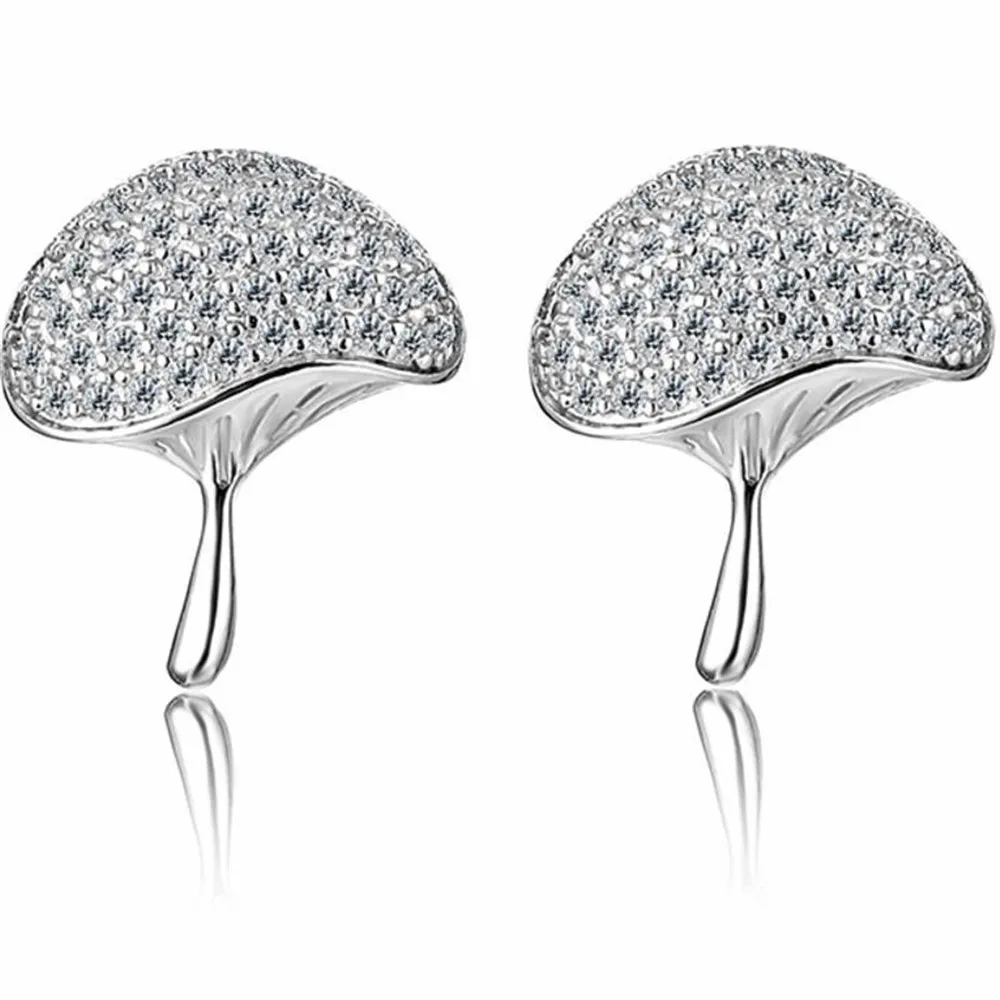 925 Sterling Silver Zircon Crystal Stud Earrings Mushroom Ginkgo Leaf Shape For Women Original Jewelry S925 Gift For Lover