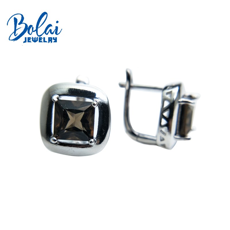 Bolaijewelry,925 silver fine jewlery with earrings natural green agate and smoky Square7.0mm girl of choice Christmas box choice