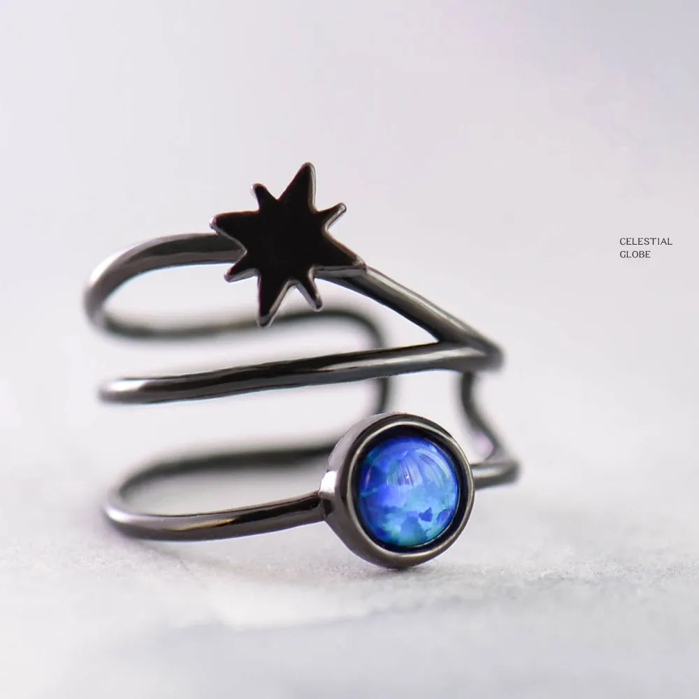 Celestial Globe Opal Clip Earrings For Women No Pierced Ears Original 925 Sterling Silver Fine Jewelry Black Gold-Color Aretes