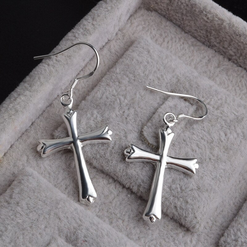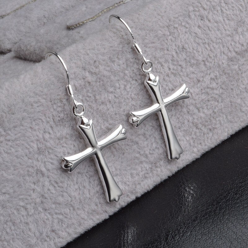 Charms 925 Sterling Silver classic cross Earrings for Women Jewelry party Wedding Christmas Gifts
