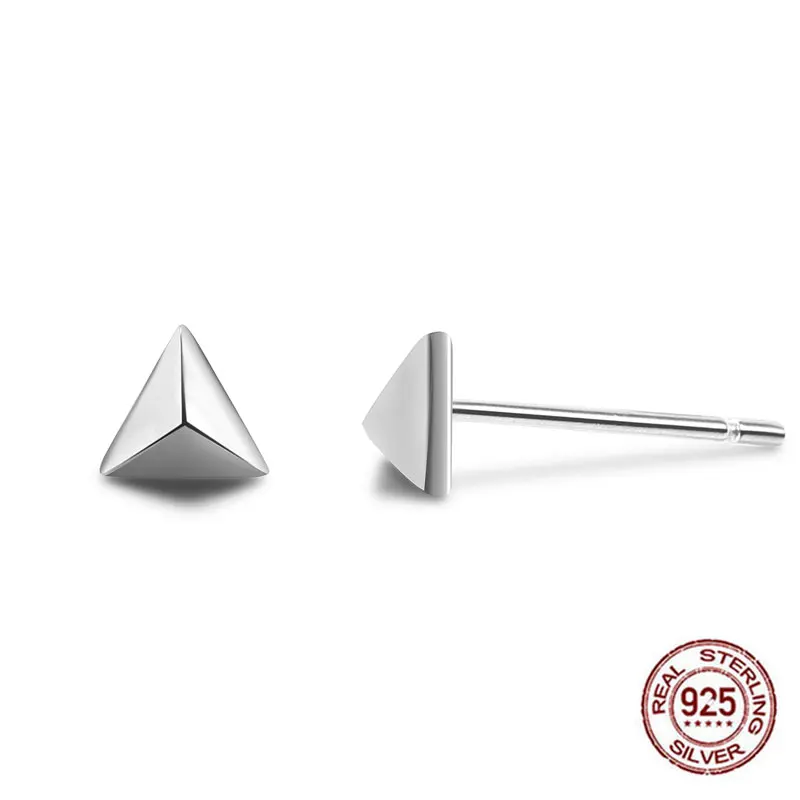 Cheap Wholesale Unisex Brincos Simple Triangle Geometric Stud Earings for Women Men 925 Sterling Silver Gold Trendy Punk Jewelry