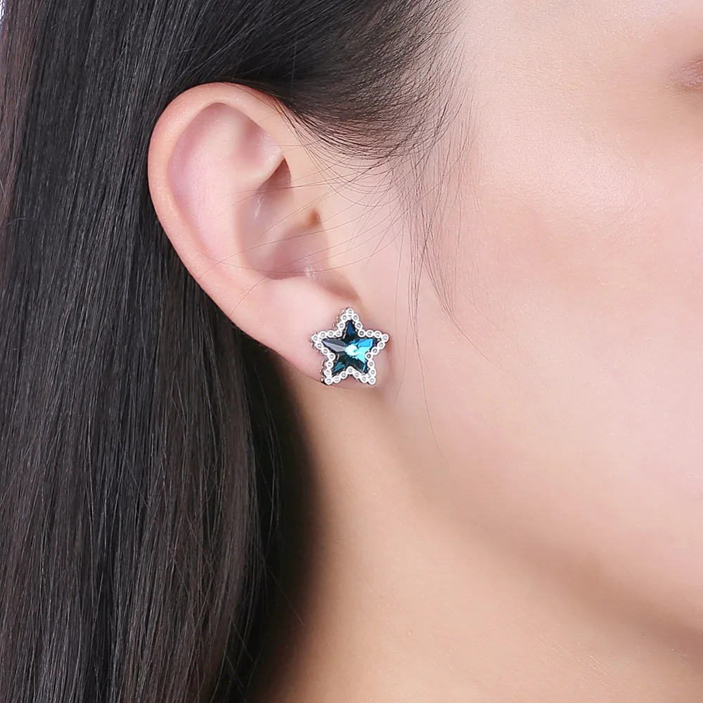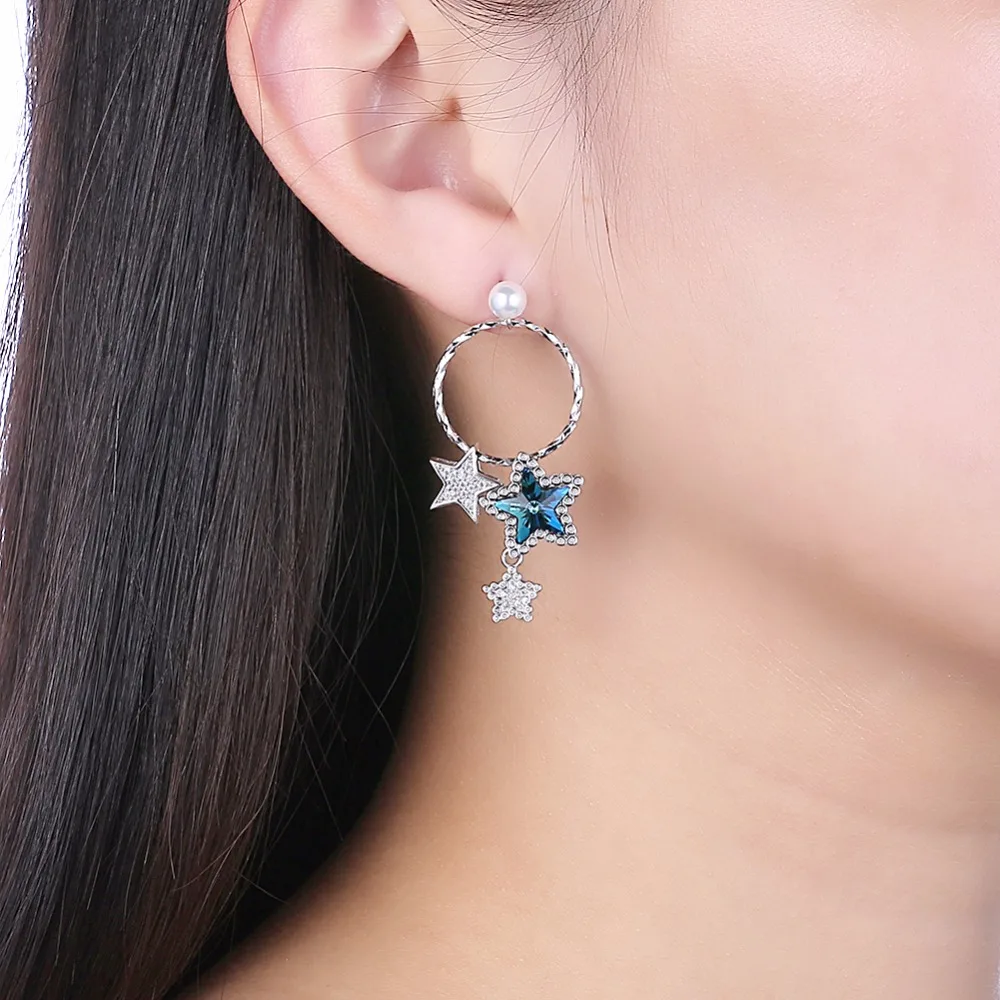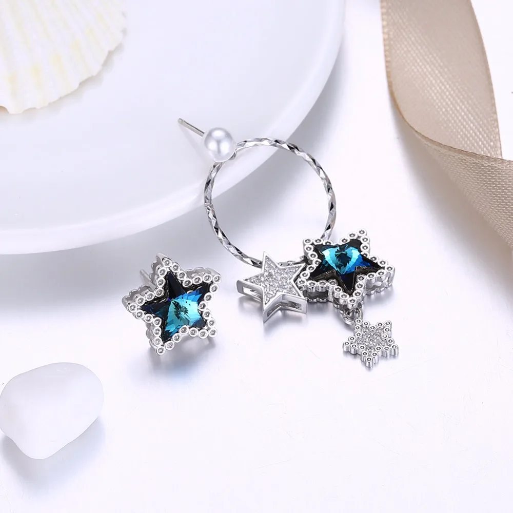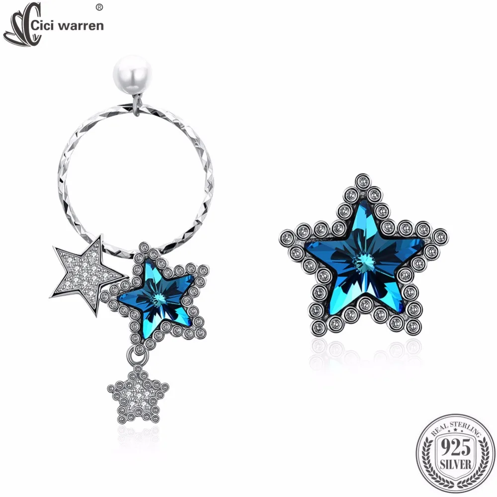 Brand Fine Jewelry Women Earrings Asymmetry Austria Crystal Drop Earring Star Dangle Earrings Lady Brincos CWE087
