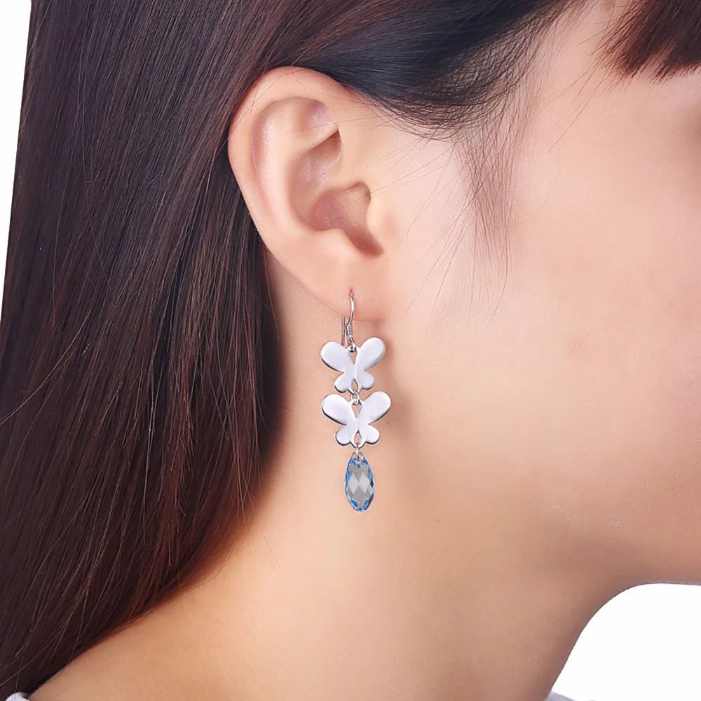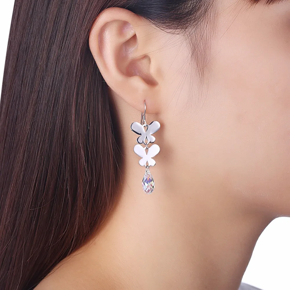 Brand Fine Jewelry Women Earrings Made With Austria Crystal Drop Earring Butterfly Dangle Earrings For Women CWE106